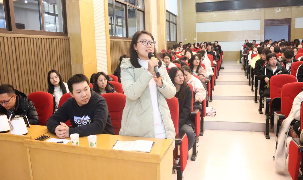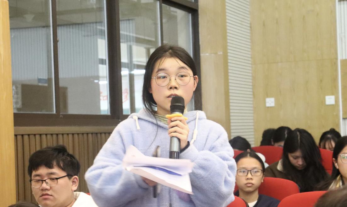 在提问交流环节中,老师、同学们积极提出问题,表达观点和疑惑,两位教授就所提出的问题进行了详细解答,现场学术交流氛围浓厚。