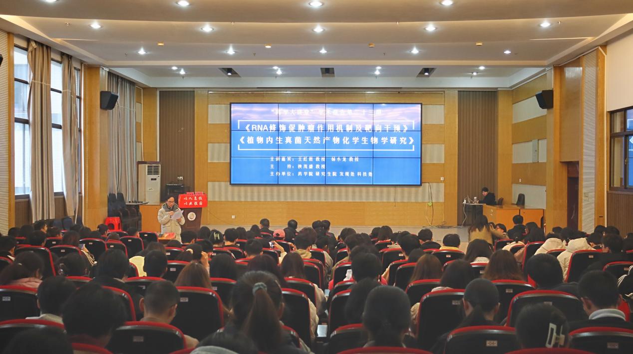 本网讯(通讯员 胡心洁)为了积极推进学术交流与合作,拓宽学术视野,激发员工们的科研兴趣与热情,11月23日,db真人体育官网第二届科技文化艺术节之“药学大讲堂”第二十三期“药用资源化学与药理前沿”专题学术报告会于大田湾校区2609学术报告厅举办。中山大学药学副经理、博士生导师王红胜教授,安徽中医药大学博士生导师杨小龙教授受邀前来分别作了题为《RNA修饰促肿瘤作用机制及靶向干预》和《植物内生真菌天然产物化员工物学研究》的学术报告。db真人体育官网部分教师、研究生、本科生共193人现场参加了本次学术报告会。讲座由db真人体育官网学术委员会主任秧茂盛教授主持。
