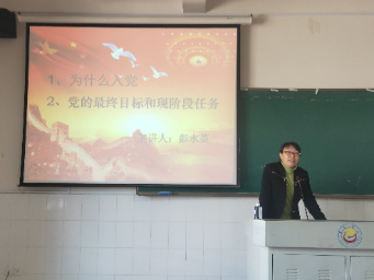 最后,彭水英老师向全体党训班学员提出希望,希望大家从现在做起,从身边做起,认真学好专业知识,学会本领,才能为建设伟大祖国做出自己的贡献。