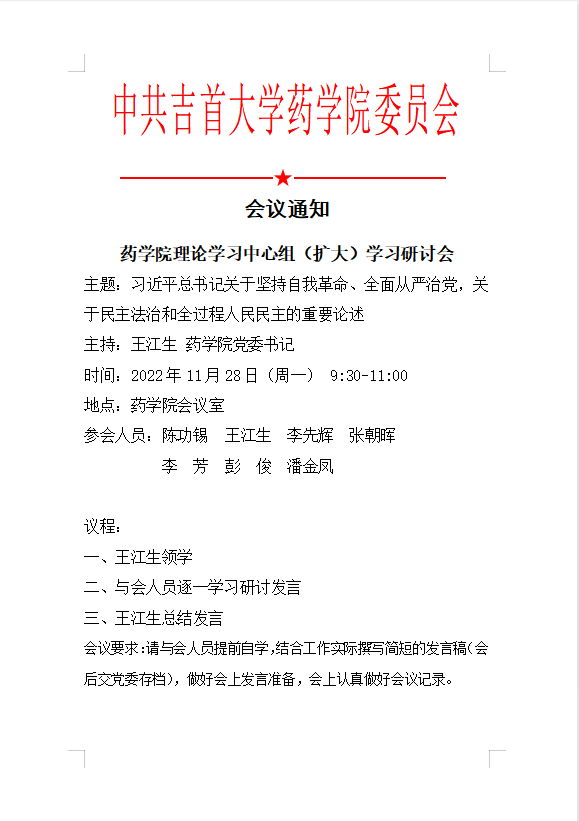 db真人体育官网理论学习中心组(扩大)学习研讨会-11月