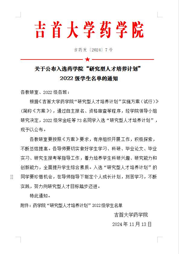 附件:db真人体育官网“研究型人才培养计划”2022级员工名单