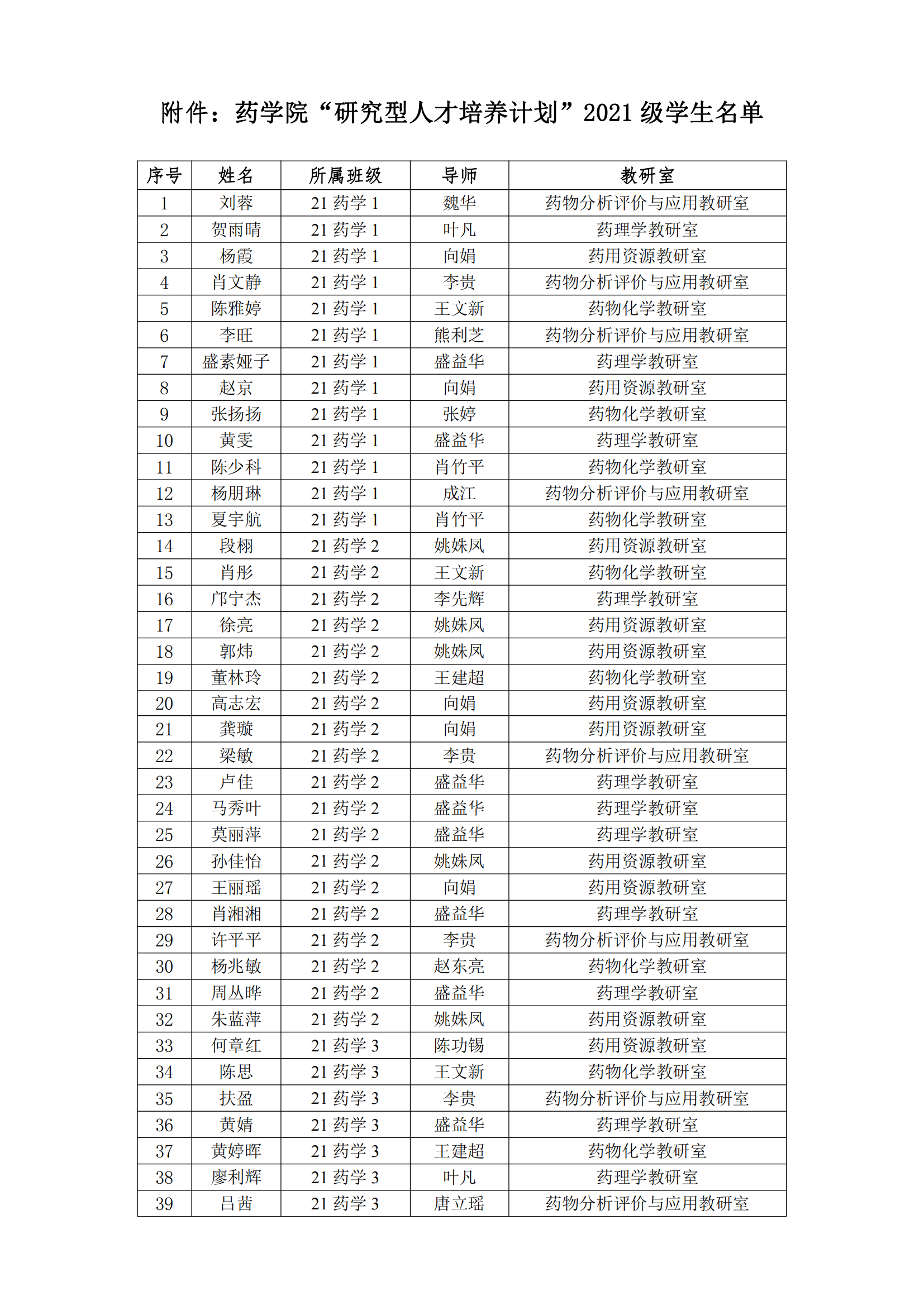 吉药发〔2023〕9号关于公布入选db真人体育官网“研究型人才培养计划”2021级员工名单的通知
