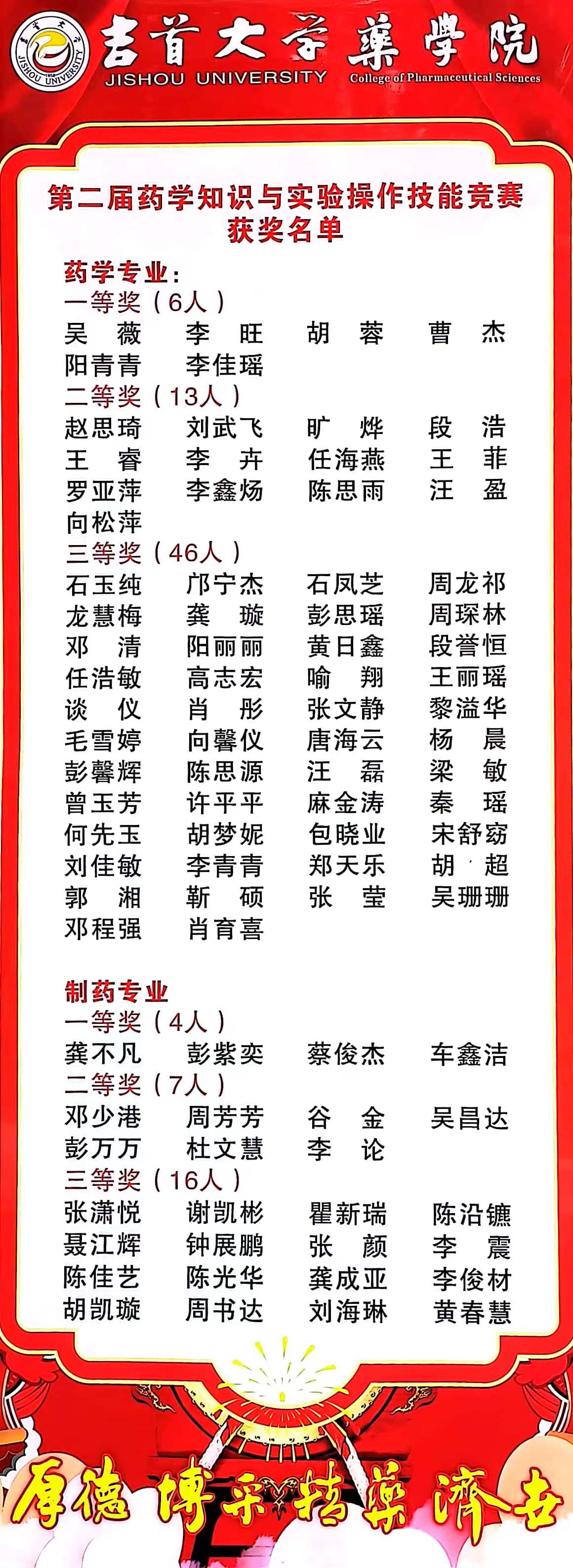 6月3日,药学知识竞赛在大田湾校区医药大楼一楼举行;6月4日,实验操作技能竞赛在大田湾校区医药大楼九楼举行。