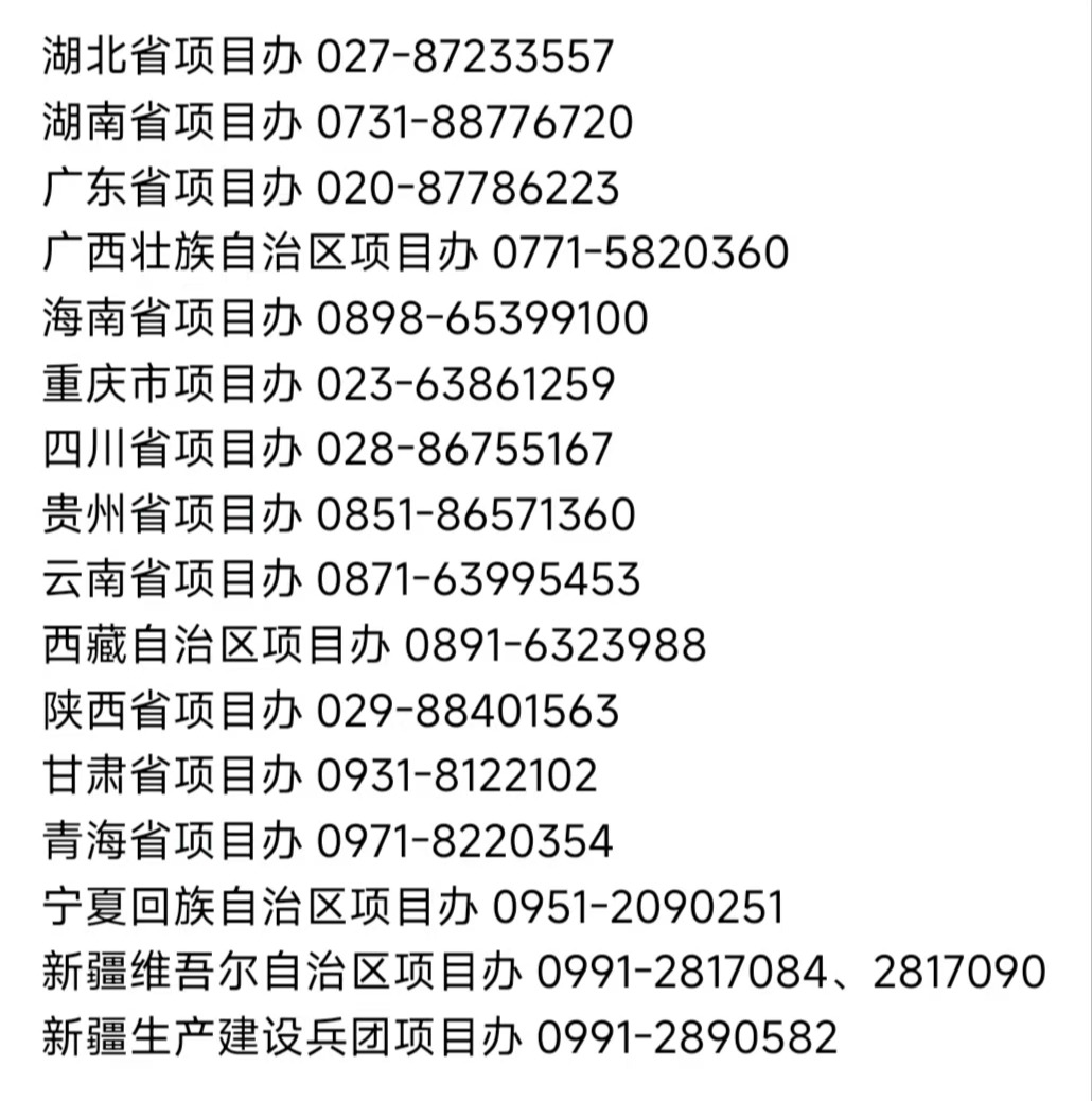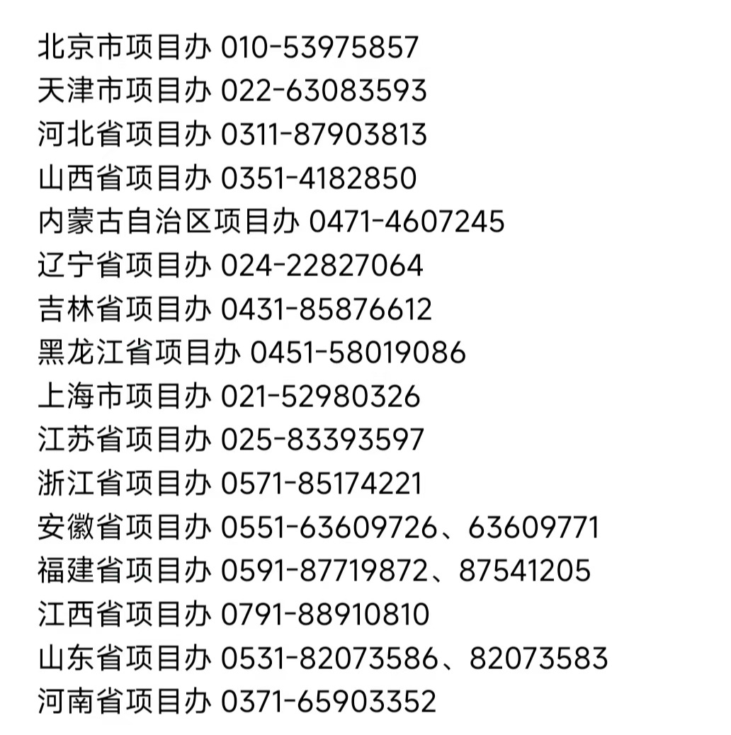 各省级项目办咨询电话