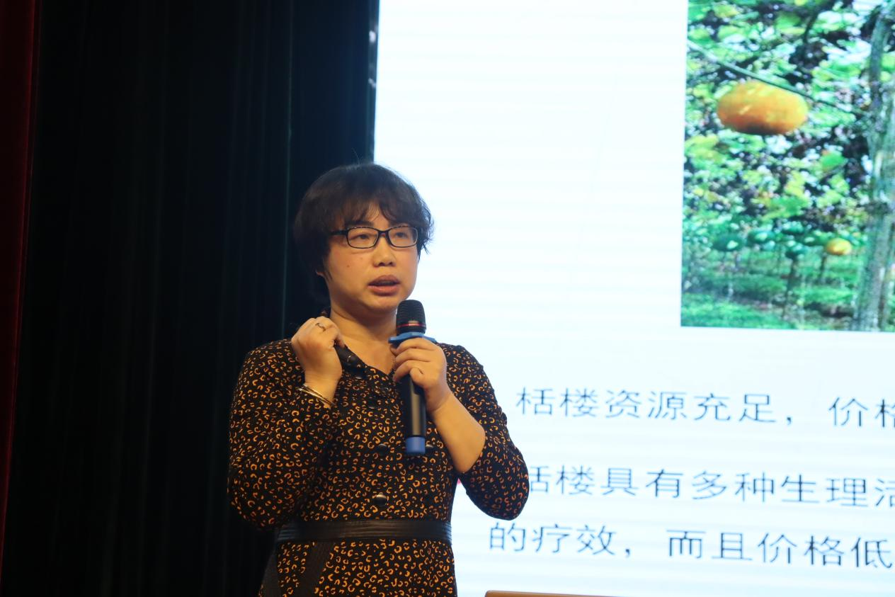 熊利芝教授在“天花粉蛋白的提取纯化及抗氧化,降血糖活性研究”报告上,从研究背景及意义等方面介绍了天花粉蛋白的提取纯化方法及其抗氧化和降血糖活性的特性,并以此例,总结了如何提取并研究生物活性成分及其药理作用。