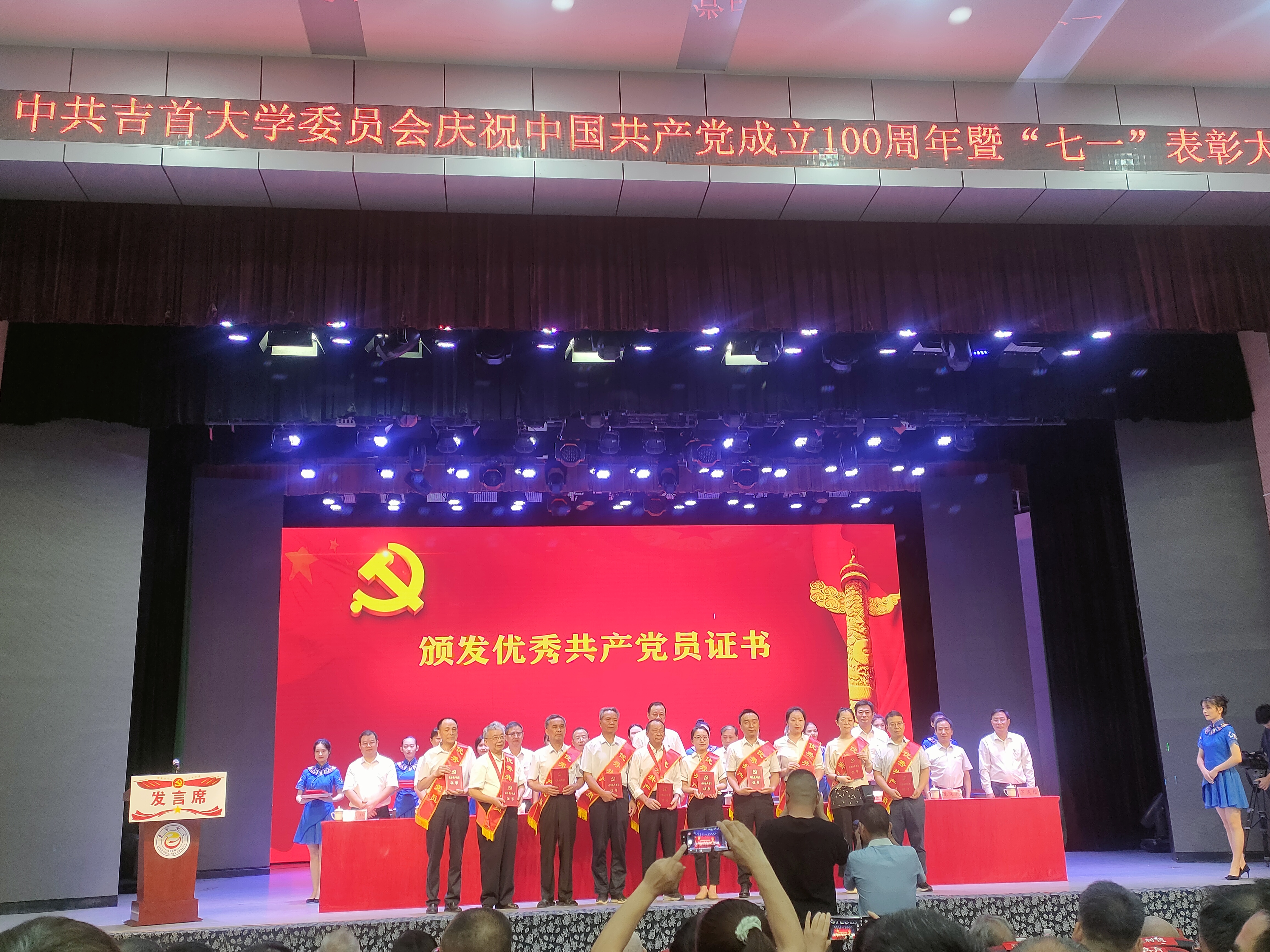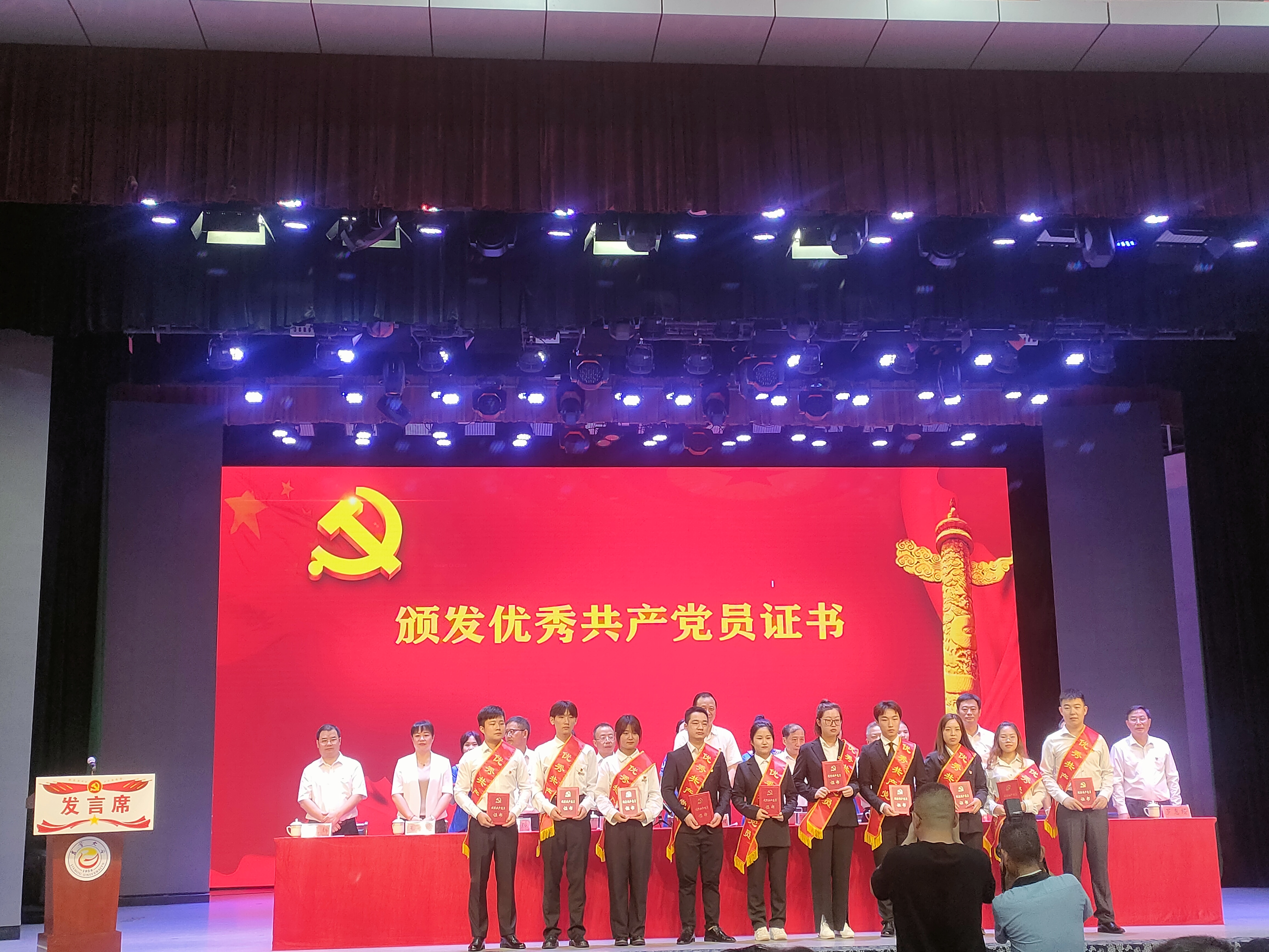 本网讯:(通讯员 潘金凤)胸怀千秋伟业,百年恰是风华正茂。6月29日下午,DB视讯庆祝建党100周年暨“七一”表彰大会在砂子坳校区隆重举行。公司党政领导、机关教辅单位主要负责人、各公司党政主要负责人、新老党员代表和受表彰对象欢聚一堂,共庆建党百年华诞。公司学工办主任、员工党支部书记彭俊老师荣获“优秀党务工作者”荣誉称号,药学系主任盛益华老师荣获“优秀共产党员”荣誉称号,员工李延安荣获“优秀共产党员”荣誉称号,员工苏一漫荣获疫情防控工作先进个人荣誉称号。