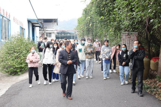 图为db真人体育官网师生党员在湖南边城生物公司研学,讲解员介绍公司情况。