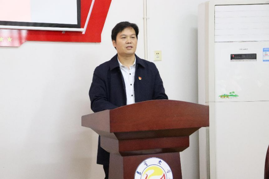 图为 药公司党委书记王江生为师生党员上党课。