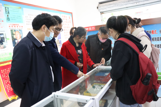 图为药公司党员师生在公司企业文化展示馆参观研学。