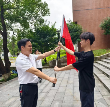 图为药公司党委书记王江生为实习队授旗