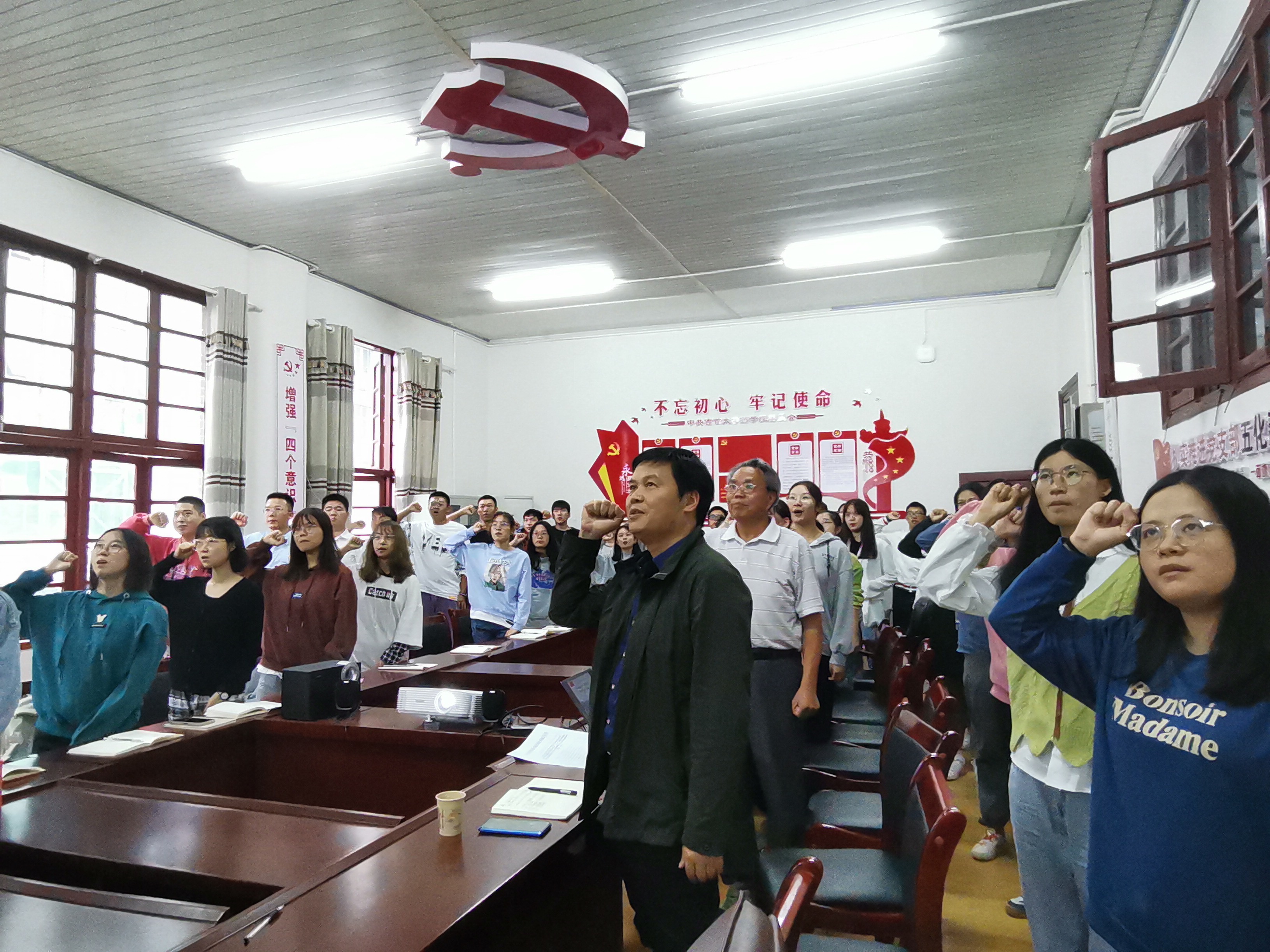 图为 现场师生齐声宣读:梦想在前,使命催征,强国有我,请党放心!