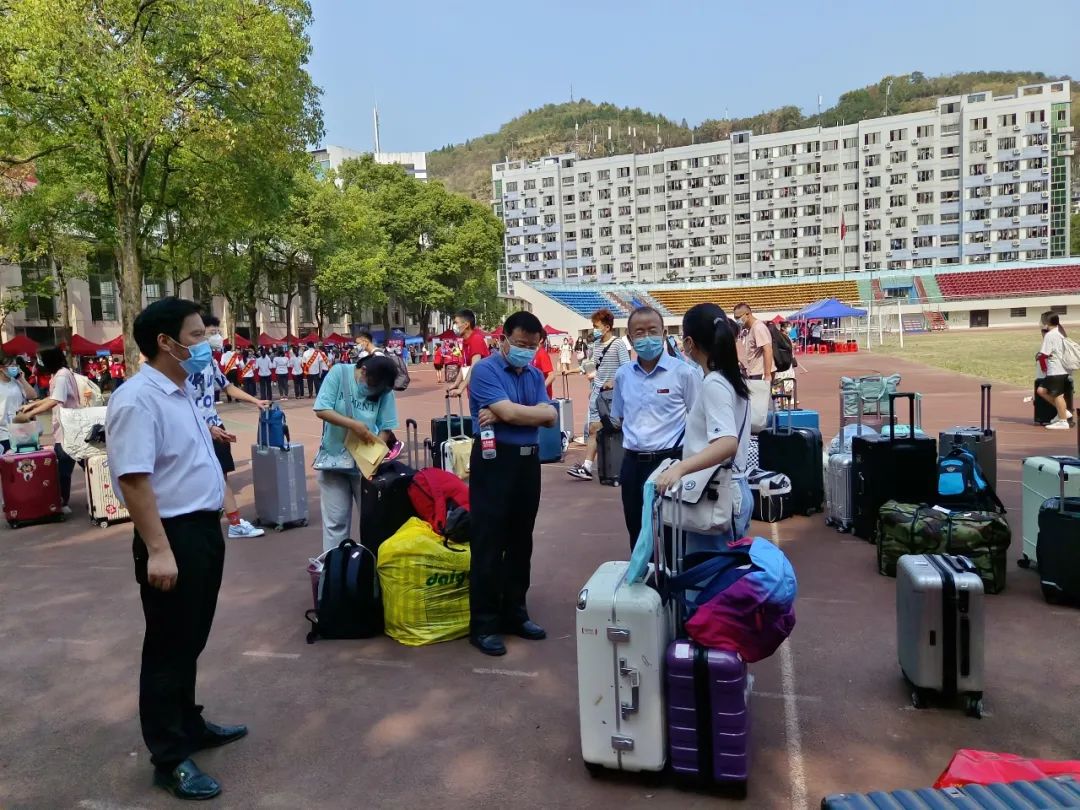 因疫情防控需要,送人车辆及亲友无法入校,且大部分新生携带物品较多,为协助新生顺利完成报到工作,40余名志愿者奔波于校门与报到处之间。早晨七点多,志愿者就忙碌起来了,第一时间接过新生的行李前往报到处,在途中,不忘提醒他们准备好录取通知书等相关文件。报到处的志愿者有条不紊,仔细核对同学入学信息,并指引其领取军训服装,前往大田湾校区。报到现场井然有序,贴心的入学“一站式”服务让新生省时省力,大大提高了报到效率。
