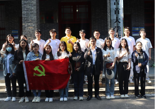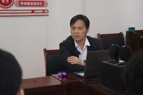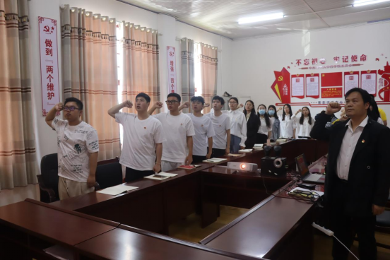 王江生介绍了党课的背景、目的。课前王江生向同学们问好,询问了同学们在就业、升学等方面的情况。党课上,王江生领誓与党员们重温入党誓词。