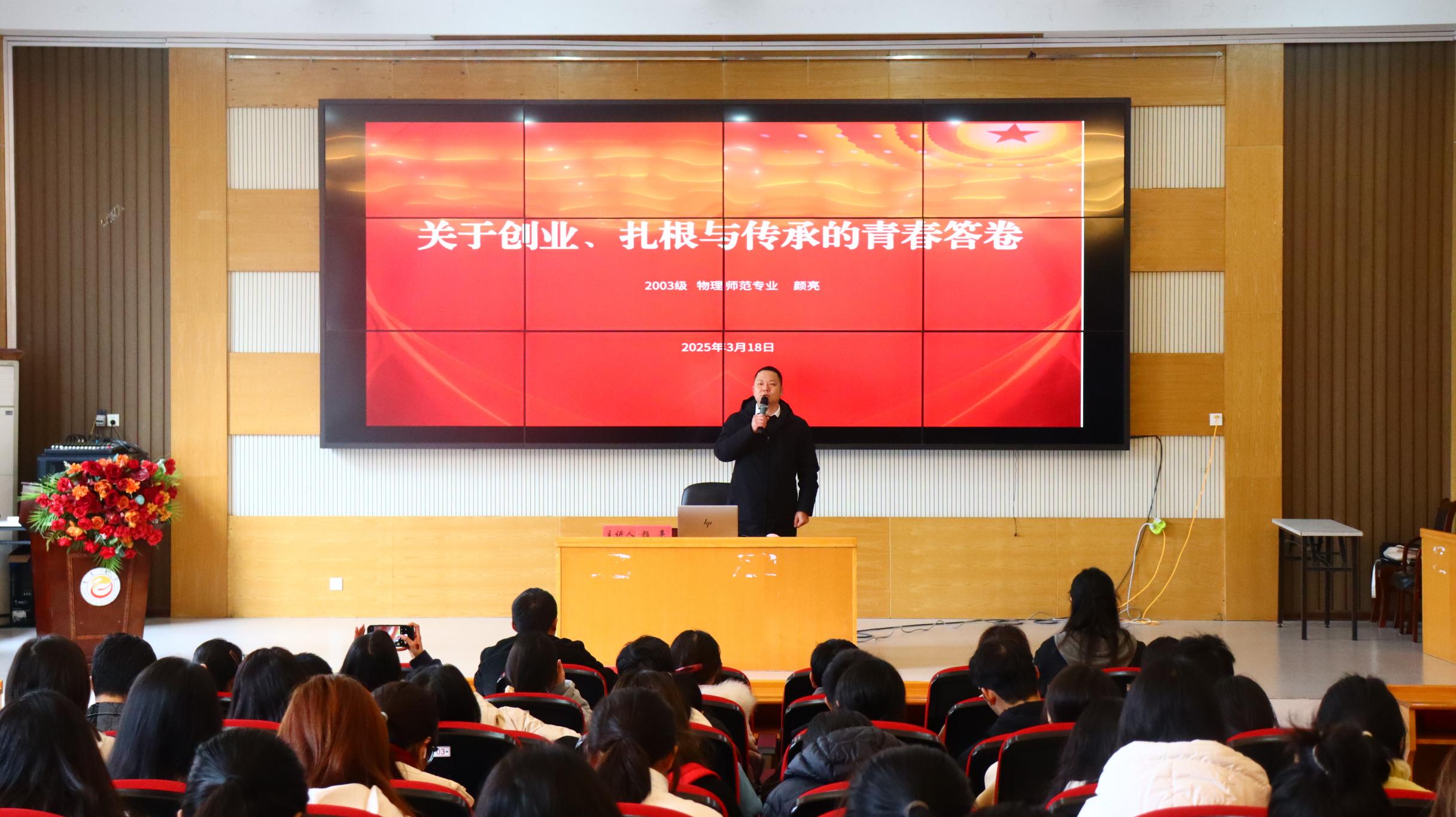 颜亮首先感谢了母校给予自己的培育之情。他结合自己的老员工活及毕业后的人生逐梦历程,希望同学们一定要珍惜大学这个关键阶段,要勤奋学习,刻苦钻研,努力奋斗,认真规划好自己的老员工活。他强调要深入生活,感悟生活,善于发现生活中的痛点,适时预判未来科学技术的发展方向,同时善于发现商机,才能萌芽出创业的点子和想法。谈及创业历程,他回溯了自己2005年起的互联网创业探索,借网易等平台变迁展现行业变革,鼓励同学们抓趋势、勇创新。同时,借硅谷银行破产案例,他强调无论学习还是创业,都要坚守“初心”。此外,他结合公司的专业特色,为同学们剖析了三大产业的创业特点并结合实例来助力同学们明确学习和赋能的方向,还分享了自己在相关生活领域的创业成果,激励同学们积极参与活动、全面提升能力。