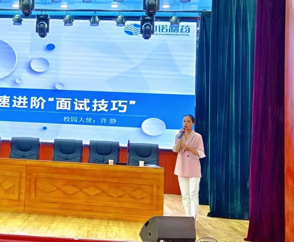 图为 迪诺制药许静为db真人体育官网员工分享求职经验