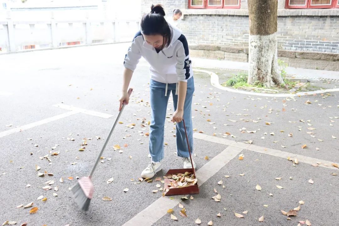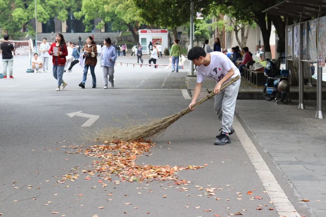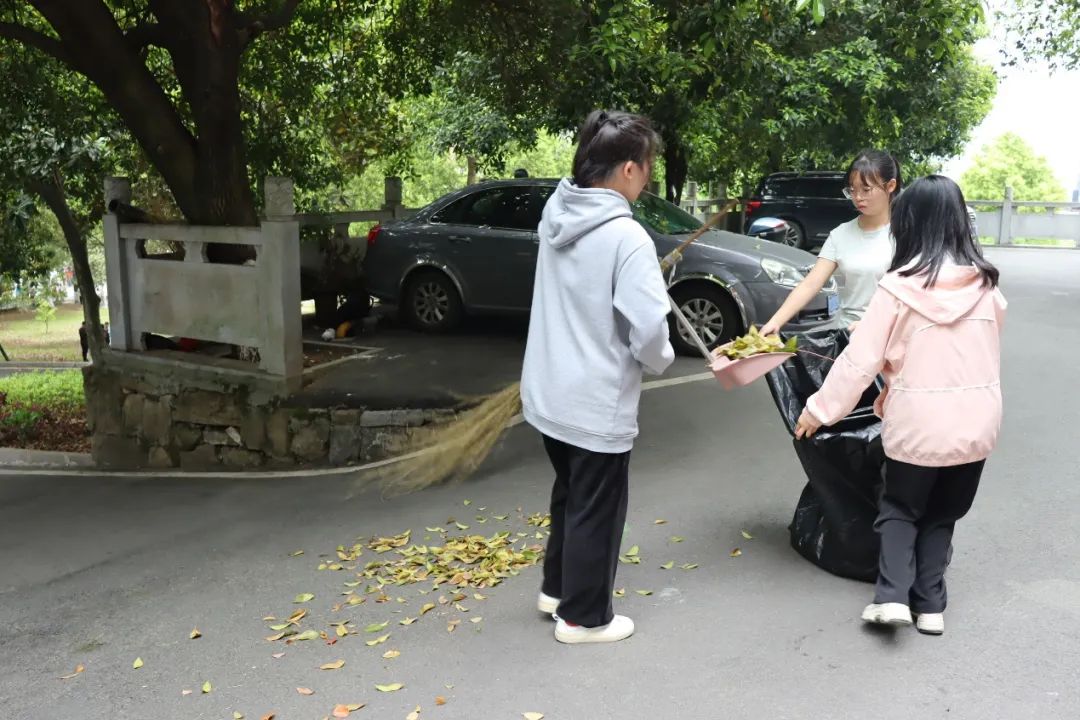 2022级制药工程2班胡丝丝:太阳明媚,微风习习,db真人体育官网的志愿者在学工办附近聚集,等待着志愿活动的开始。一阵阵欢声笑语后,我们清扫活动开始了。在负责人签到后,我们发现劳动工具的数量不够,我和好友龙姗姗便径直去学工办借劳动工具。借到后,我和龙姗姗一起打扫学工办前的空地,不一会儿,落叶和垃圾就已经清扫干净。负责人根据情况重新安排了打扫区域人数,我于是又去了小礼堂旁的小道,跟着其他志愿者打扫,从小道一直扫到阶梯,从阶梯一直扫到羽毛球场旁的停车场。大家在学工办前合影留念后,我和龙姗姗一起归还了劳动工具。