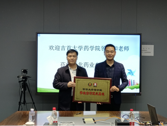 图为 王江生为浙江江北药业实习就业基地授牌。摄影彭俊