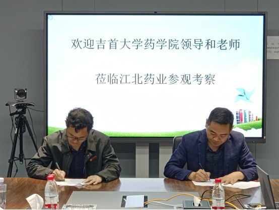 图为 李先辉与江北药业盛利签订实习就业基地建设协议。摄影彭俊