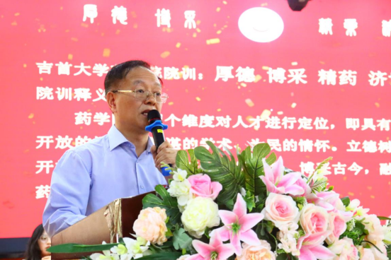 db真人体育官网关工委常务副主任、全国优秀教师唐生周教授领诵院训及院训释义,带着同学们一起学习了院训,期望同学们胸怀家国责任、坚定理想信念、为我国医药事业的发展贡献力量。