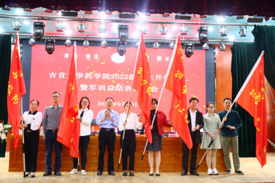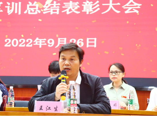 王江生作总结讲话,首先对公司院军训工作取得的成绩表示肯定,对获奖的个人表示祝贺,对全体教练员表示感谢。他勉励班主任:“一面班旗就是一份责任,相信各位班主任一定会做好班级建设引路人,关心关爱员工健康成长,为培养勤学习、勤研究、勤实践的“三勤员工”,创建学习型、创新型、活力型的“三型公司”而共同努力。”他向全体新同学提出三点希望:一是希望大家牢记经理的讲话精神,把握药学时代脉搏,构筑美好梦想,牢记求学初心,快速适应老员工生活,学会学习与探索,学会尊重与关爱,学会勇敢与奉献,爱国爱校爱院爱自己,一刻也不停留,以朝气蓬勃的精神面貌策马扬鞭健康中国新征程;二是希望大家牢记教师代表李思迪博士的话,学会学习,学会做人,学会做事,常去图书馆,强健体魄,不迷恋网络游戏,养成健康的学习生活习惯,面对困难不退缩,以仁爱之心龙腾虎跃精药济世新时代;三是希望大家向李懋等优秀学长学姐们学习,坚持求真务实勇攀高峰,践行校训“以人名校以业报国”和院训“厚德 博采 精药 济世”,为祖国医药卫生事业的发展和人类身心健康而奋斗终生!