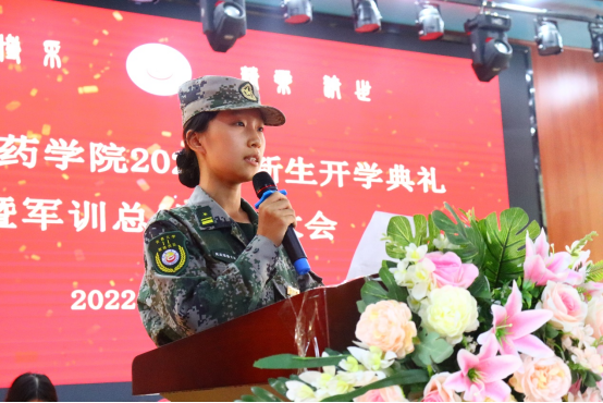军训教练员代表2020级制药工程1班王筱鑫同学发言,她建议同学们继续严格要求自己,在学习生活中继续发扬不怕苦,不怕累,艰苦奋斗的精神,增强集体荣誉感,学会关心集体,保持良好作风,向着目标努力奋斗。