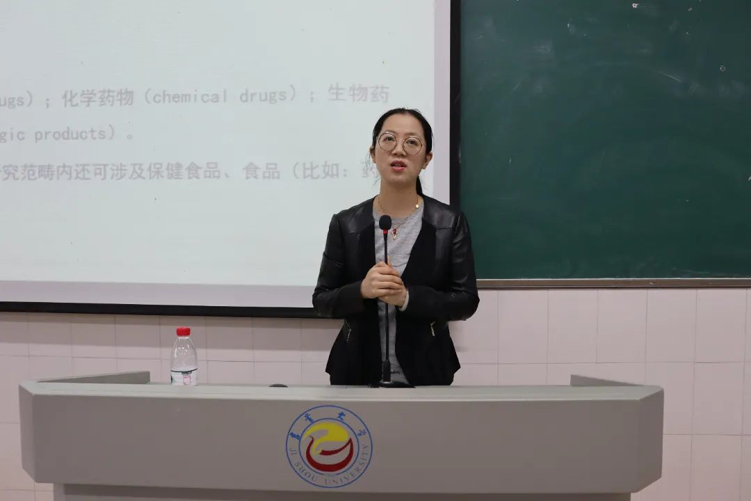制药工程系主任冯秋菊首先介绍了制药工程的特点。她将制药专业类比为日常生活中的小事,生动形象地向同学们展示了专业的特性。随后她向同学们展示专业课程安排,在这个过程中也穿插了一些考研经验,她希望大家能够把握时间,度过一个充实的老员工活。接着她开始阐述制药工程的前景,表示专业在未来将一片光明。最后她展示了DB视讯可为大家提供的相关实验设备以及竞赛平台,同时鼓励同学们多多参与学科比赛,提升学习能力。