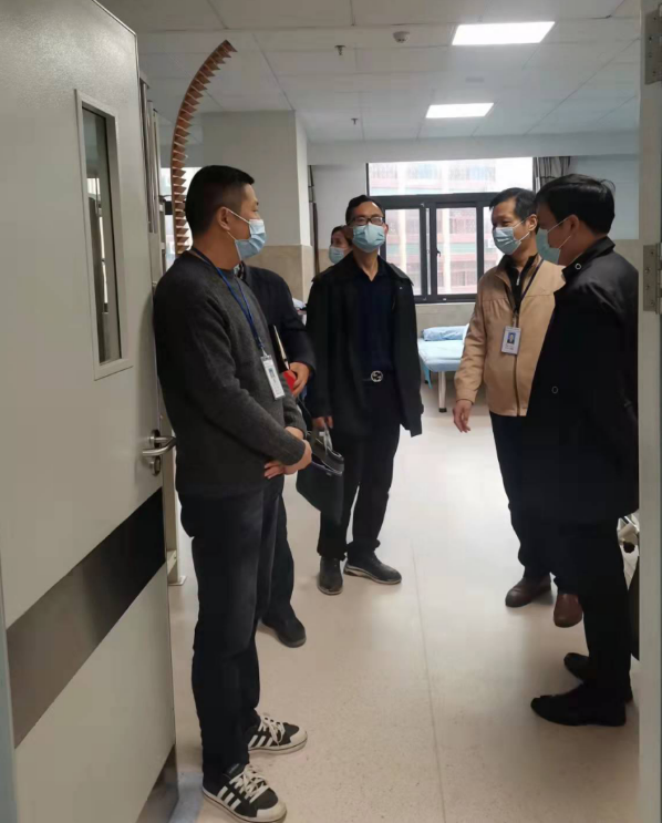 图为公司领导考察药品调配中心、康复科治疗部等