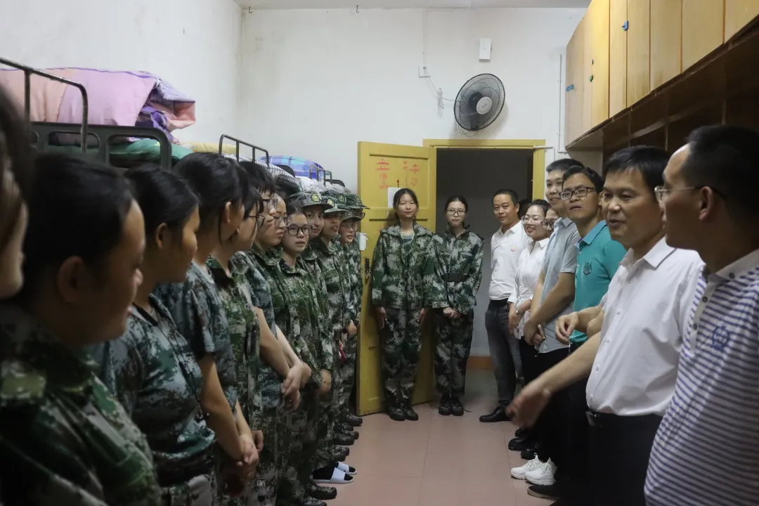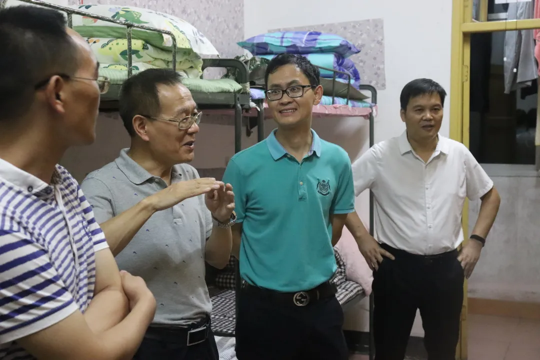 公司经理陈功锡、公司党委副书记王江生、副经理李先辉、副经理张朝晖、学工办、班主任老师一同下寝看望刚入学报到的2021级新生。