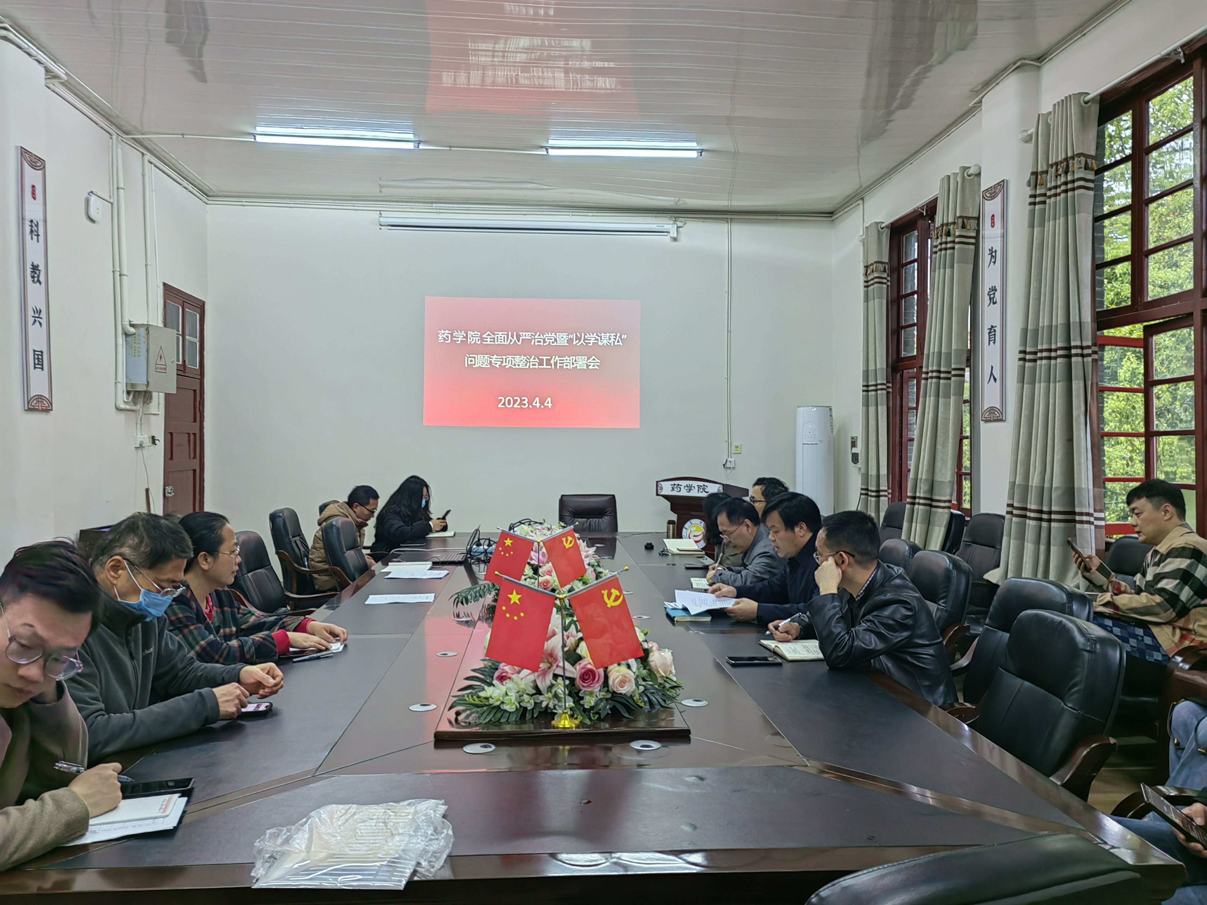 本网讯(通讯员 潘金凤)4月4日上午,公司党委在会议室召开全面从严治党暨“以学谋私”问题专项整治工作部署会,公司全体教师参会,会议由党委书记王江生主持。
