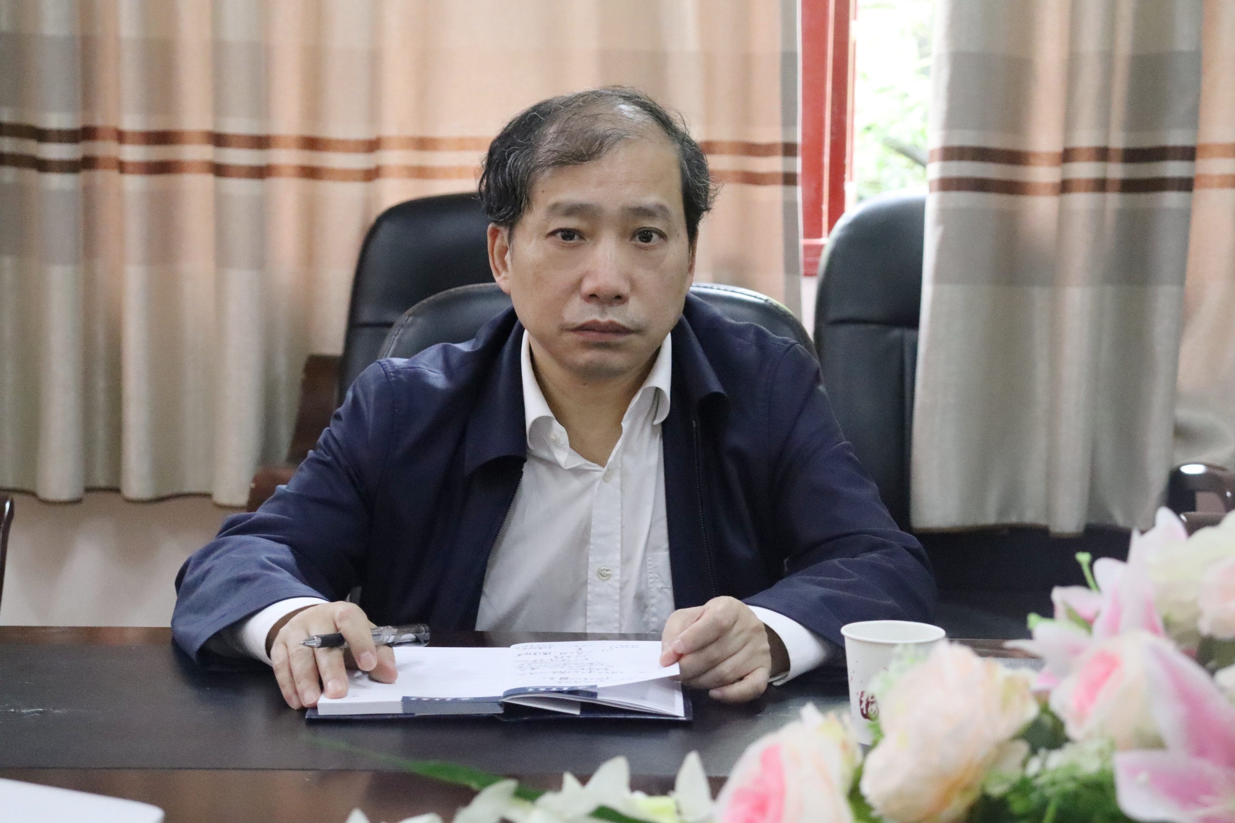 图为 廖志坤董事长到db真人体育官网调研指导工作与公司领导班子座谈。摄影 石静咏诗