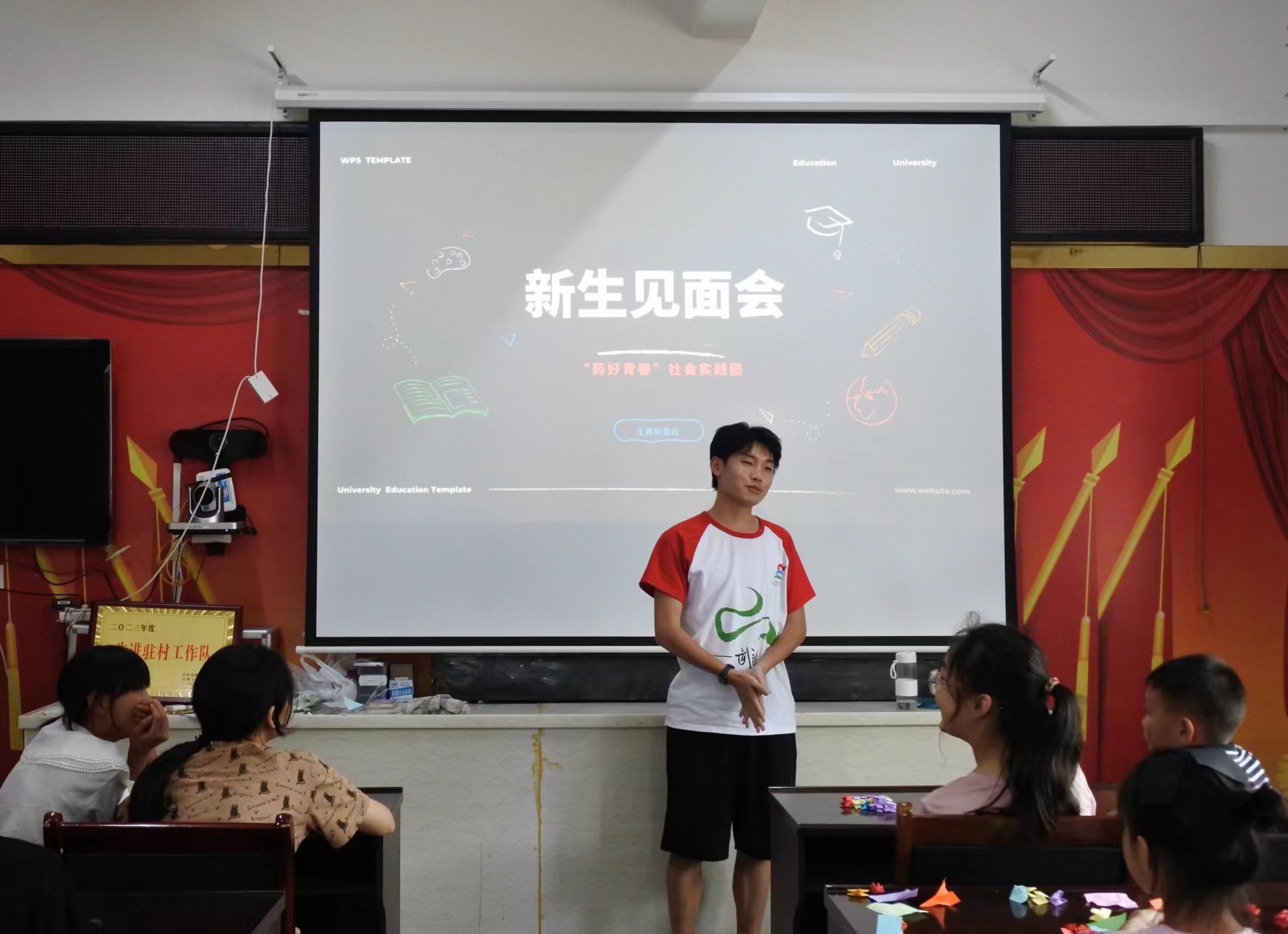 支教科普组用游戏《名字接力》拉近同学之间、同学与老师之间的关系。紧接着的折纸环节,让同学们充分感受到了课堂的轻松活泼使他们不那么拘谨。课堂结束后,支教科普组成员们向同学们询问了课堂意见,并进行了家访,有小朋友表示:“我很喜欢老师们上的课,明天我还会继续来上课的,找老师们开心学习。”