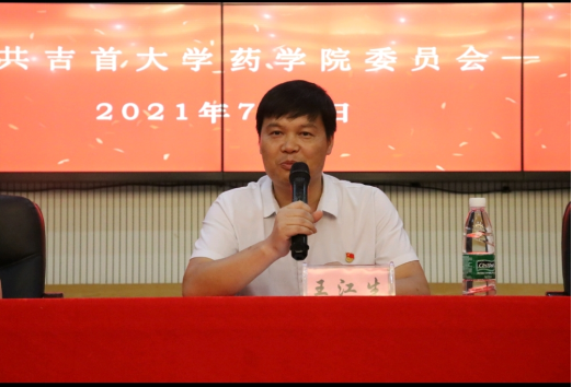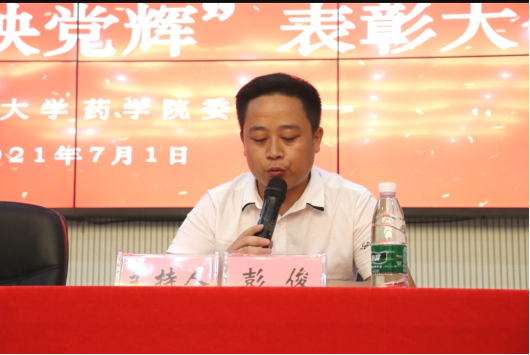 7月1日晚上,db真人体育官网庆祝建党100周年"争先创优映辉"表彰大会在第二教学楼2609多功能报告厅举行,药公司党委副书记王江生、副经理李先辉、副经理张朝晖、学工办主任彭俊、全体员工党员以及团员代表参加会议。会议由彭俊主持。