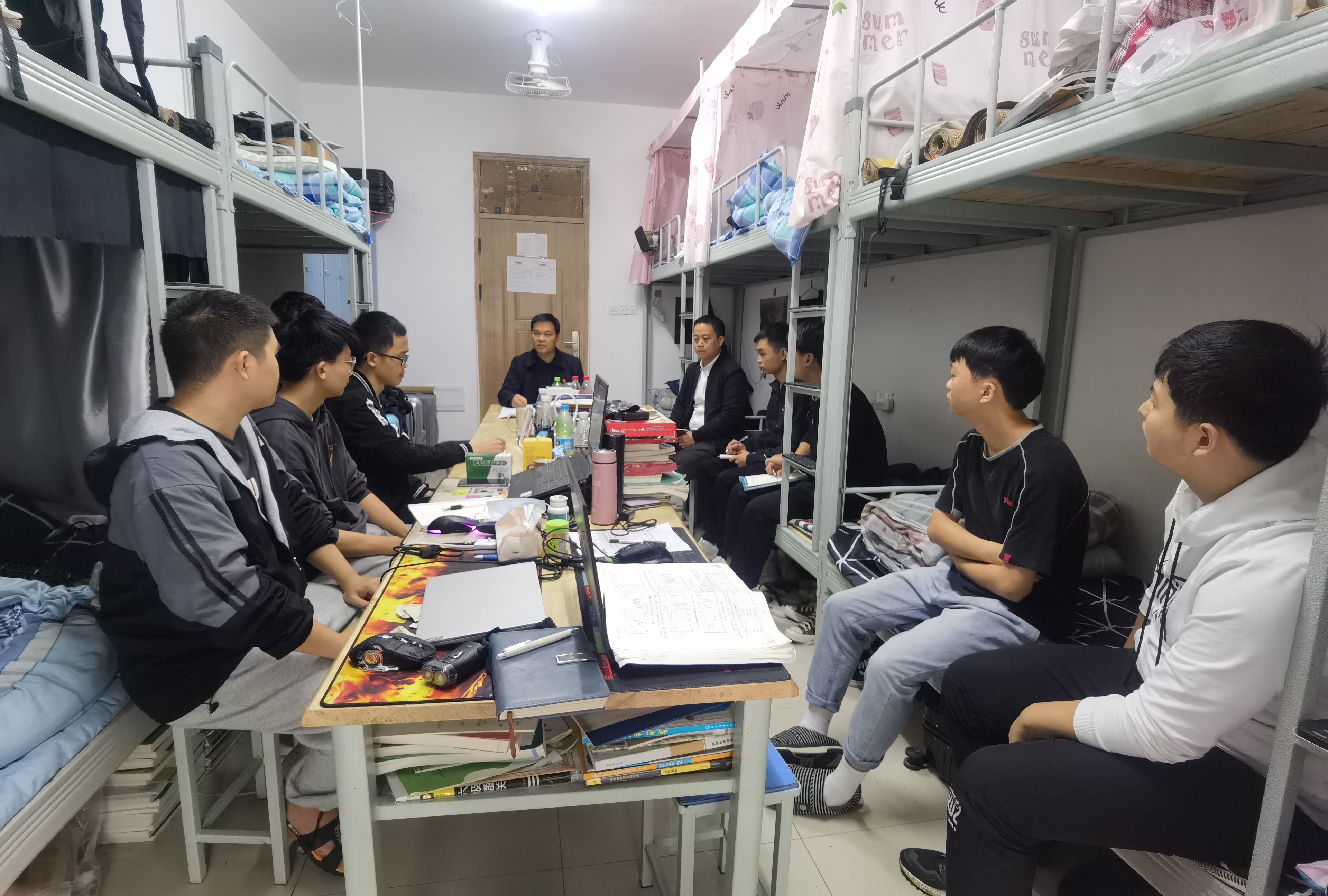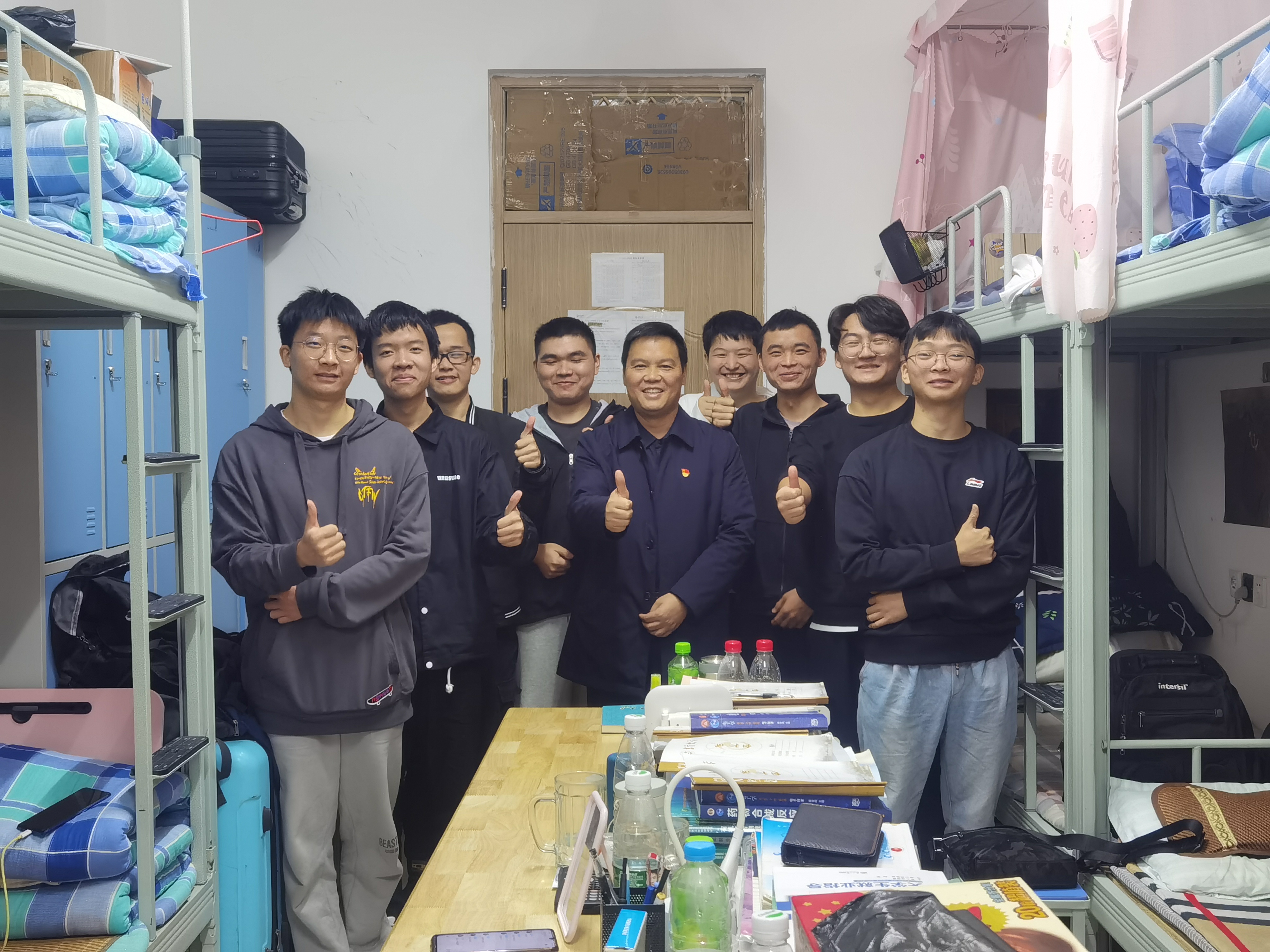本网讯:(通讯员 张忠怀)10月26日上午,为推进党史学习教育工作,贯彻落实《药公司党史学习“六百工程”实施计划》,积极开展“百位教师深入百间宿舍”活动,药公司党委副书记王江生深入员工宿舍,与对接宿舍2#116寝室2019级制药班的八位同学围绕如何将宿舍建为“文明整洁、学风优良、和谐互助、安全有序”的阵地进行了座谈交流和指导。