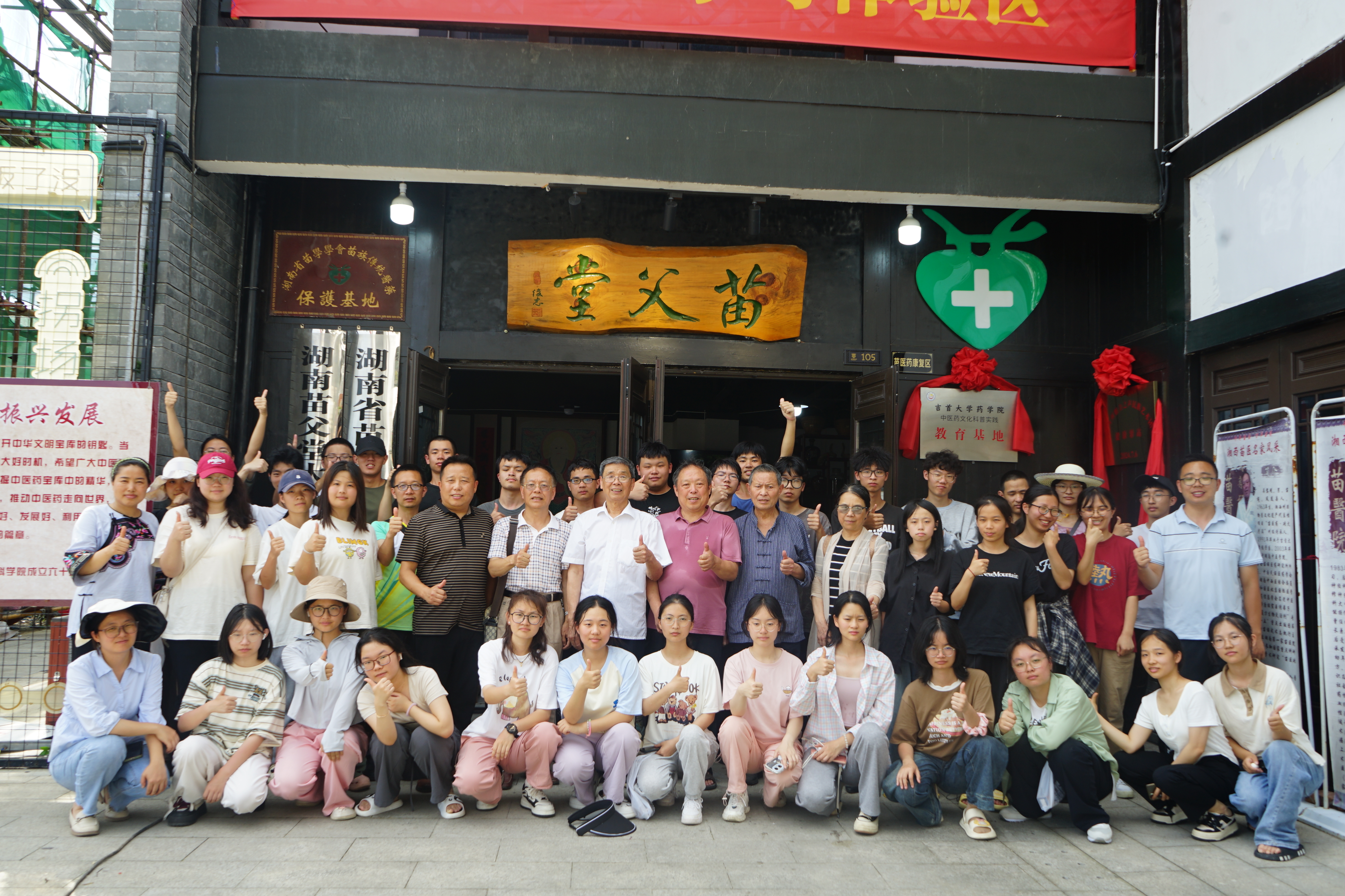 db真人体育官网中药学专业野外实习队参观了苗父堂苗医药展示与体验区,了解苗药治疗过程与治疗原理,深入学习中草药功效。参观完后,举行db真人体育官网中医药文化科普实践教育基地授牌仪式,一行人于苗父堂前合影留恋。