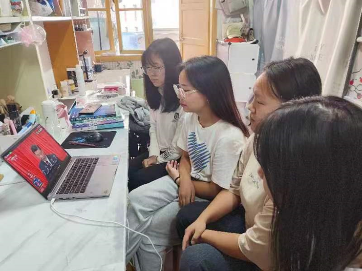 图为 db真人体育官网员工在寝室收看党的二十大开幕会