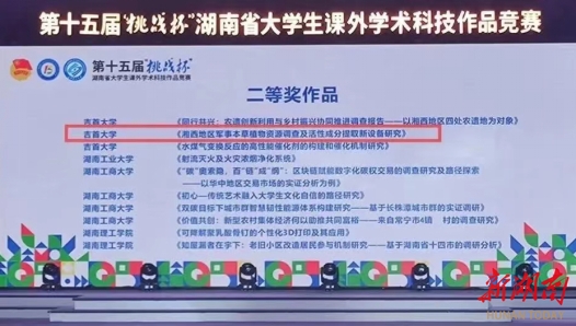 近日,第十五届“挑战杯”湖南省老员工课外学术科技作品竞赛终审决赛在长沙理工大学落下帷幕。经过激烈角逐,db真人体育官网《湘西地区军事本草植物资源调查及活性成分提取新设备研究》项目获得省级二等奖。