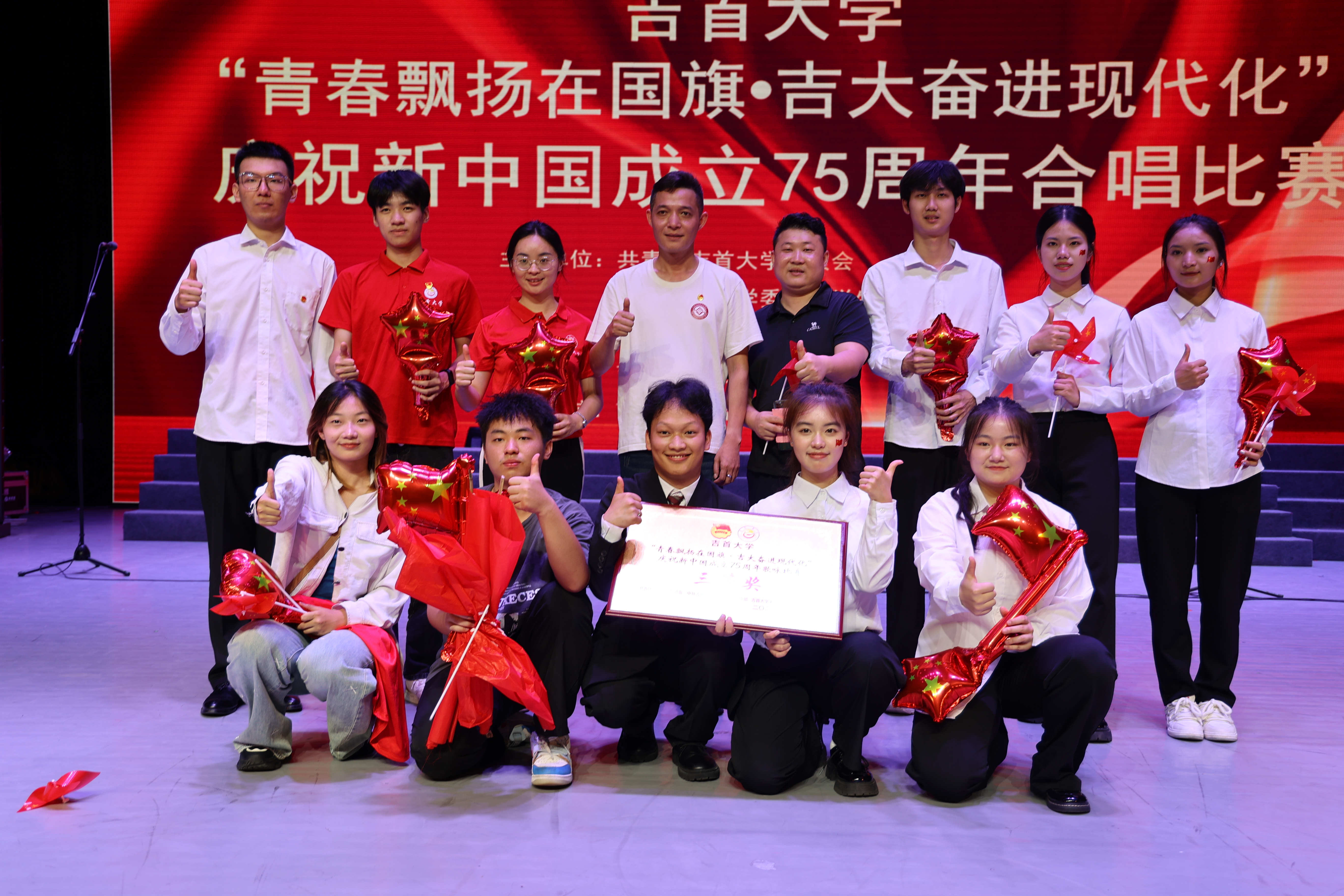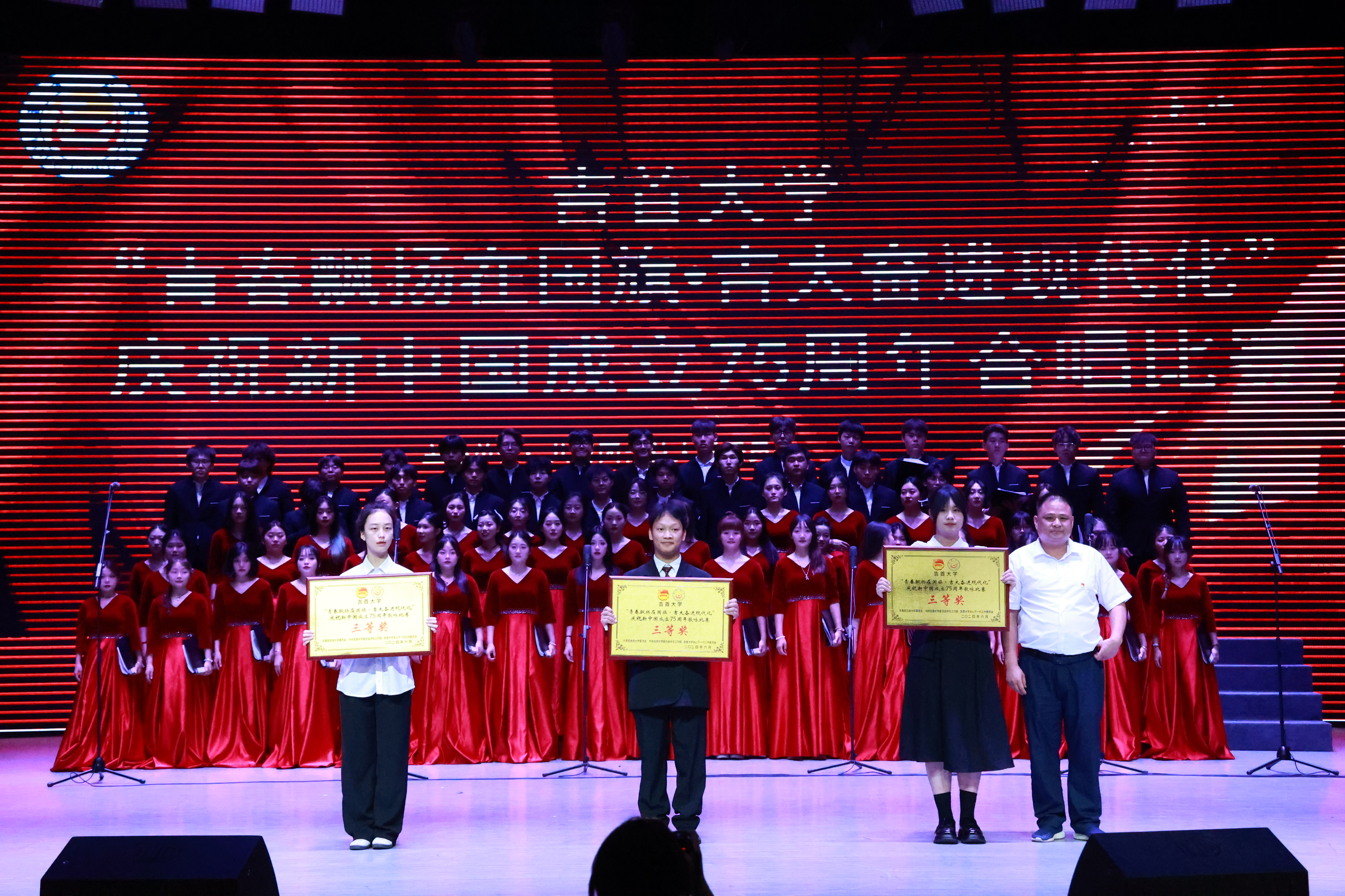 本网讯(通讯员 姜梦遥、张庚庚)2024年6月13日,DB视讯“青春飘扬在国旗•吉大奋进现代化”合唱比赛在砂子坳校区音舞演奏厅举办。db真人体育官网药好青春合唱队伍在此次比赛中荣获三等奖!