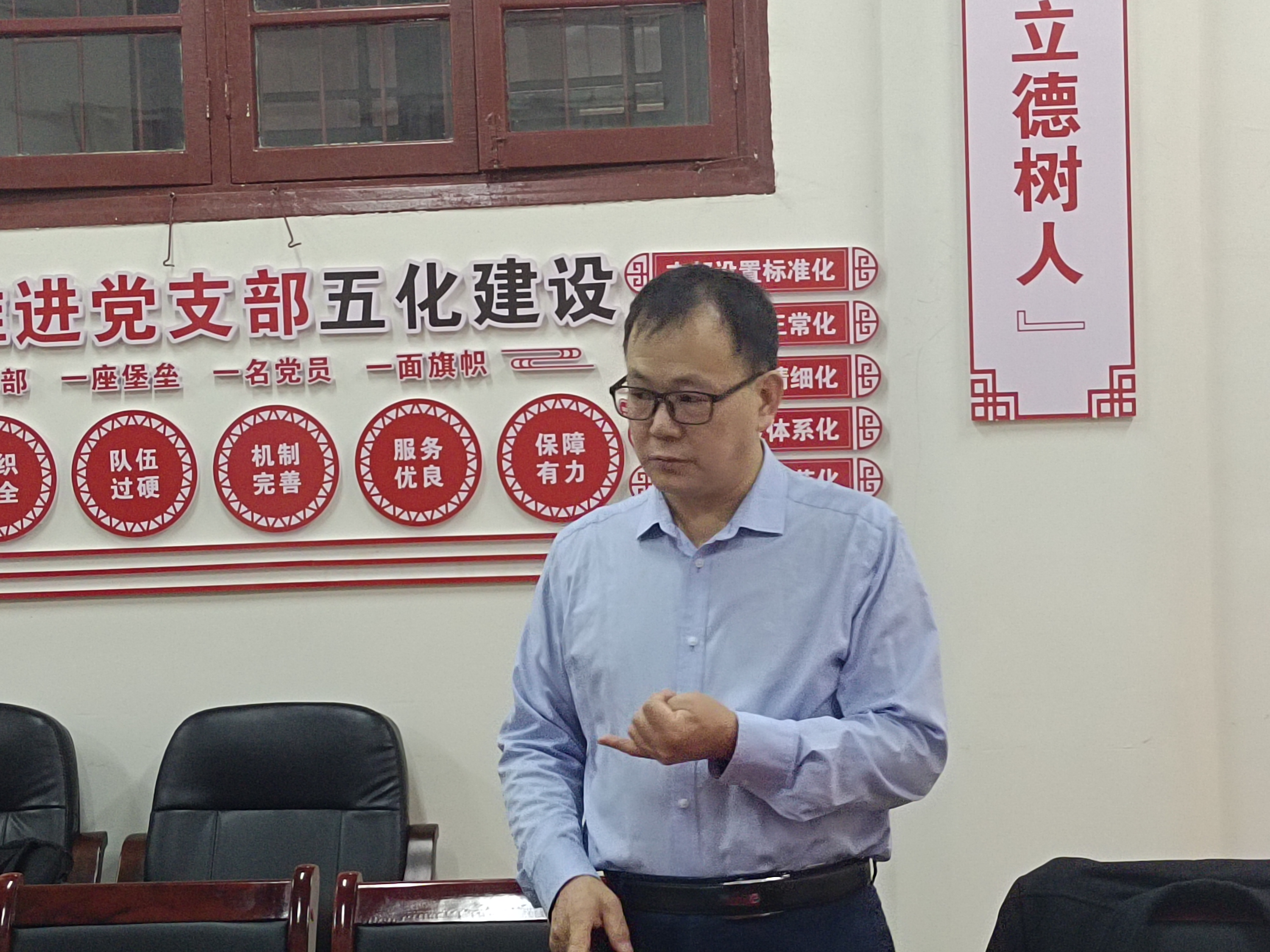 图为 戴军老师在党课上讲课