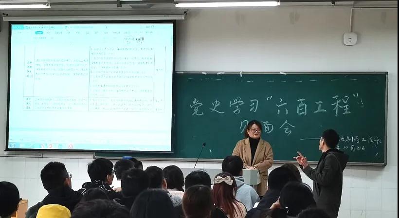 图为老师刘智为同学们讲解“六百工程”