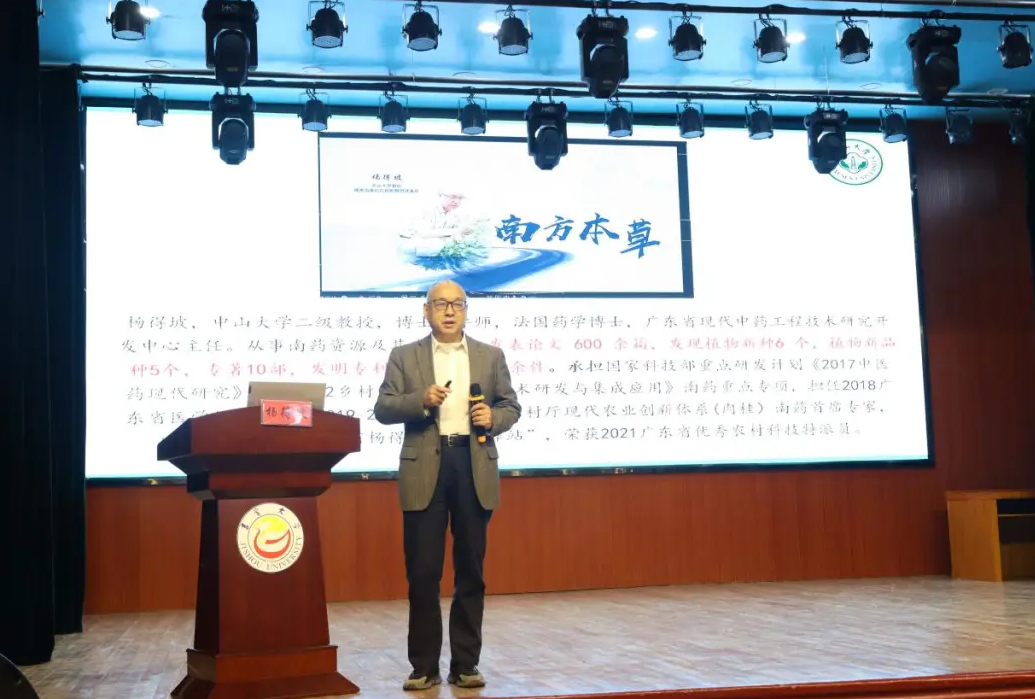 杨得坡教授的学术报告题目为“广东南药资源研究及其产业开发现状”。他介绍了南药的省地分布情况、具体概念以及广东省重点保护与推广的8个岭南中药材品种和岭南新粤八味等内容。还着重介绍了其研究对象广陈皮的特点、功能及其广泛的药理作用,如理气和胃、燥湿化痰、抗氧化等。此外,他还介绍到,大学与企业的产学研合作越来越受到重视,国家、广东省与地方政府正强力推动广陈皮的科研和产业向前发展。
