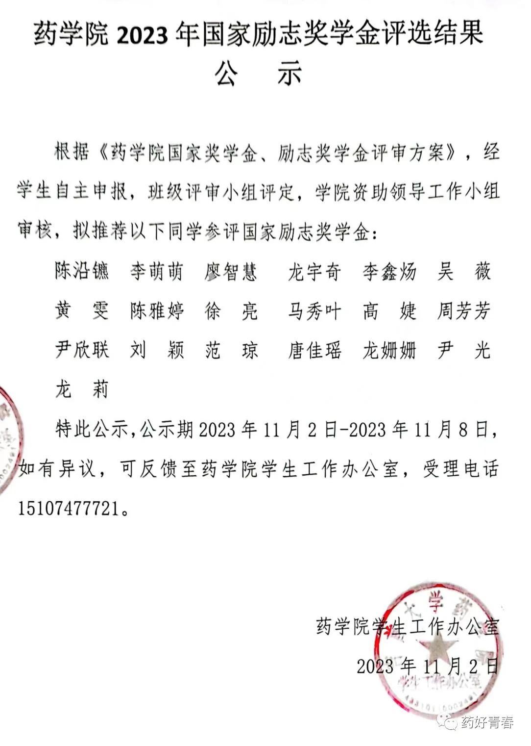 附国家励志奖学金获得者名单: