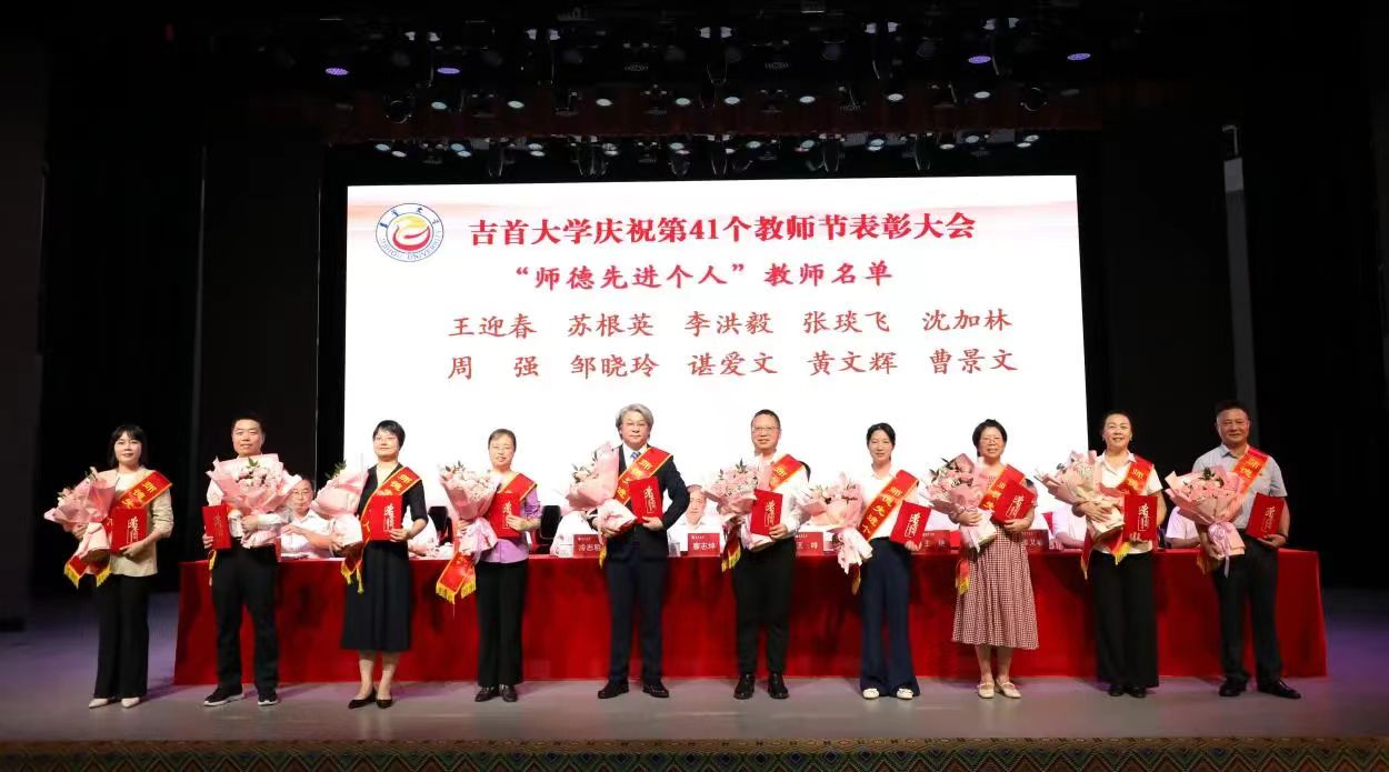 王迎春教授(左一)荣获“师德先进个人”荣誉称号