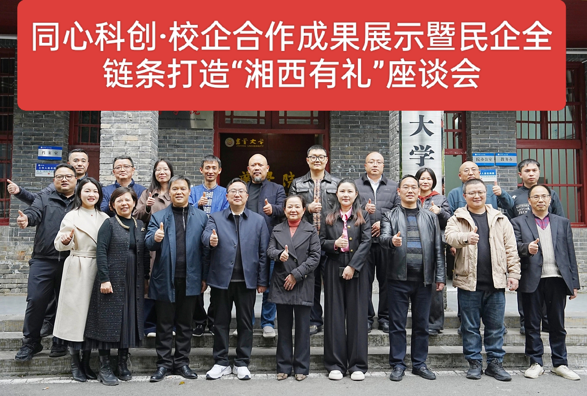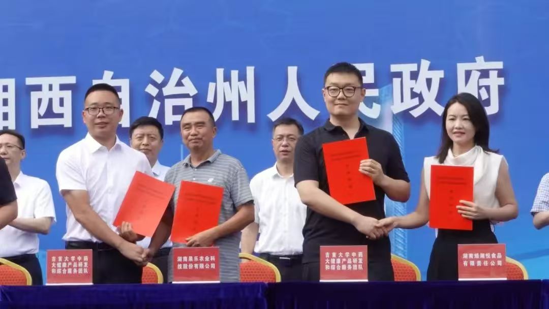 积极推进科技成果落地与社会服务。与企业建立了“黄金茶高值化利用联合研发中心”“保靖黄金茶功能配方茶饮联合研发中心”,为湘西州龙山县、保靖县、古丈县、花垣县等地药材深度开发与高值化利用提供了技术支持,与湘西本土多家企业签订合作协议,助推区域经济发展。与安徽菁科生物科技建立科研合作,王金虎博士团队的校企合作科研项目“对羟基苯海因先进合成工艺的研究与开发”获得100万元经费支持。与湘西州委统战部、湘西州工商联联合举办同心科创·校企合作成果展示暨民企全链条打造“湘西有礼”活动,共同探讨校企协同创新,谋划“湘西有礼”品牌发展大计,共推“湘西有礼”品牌全链条升级。
