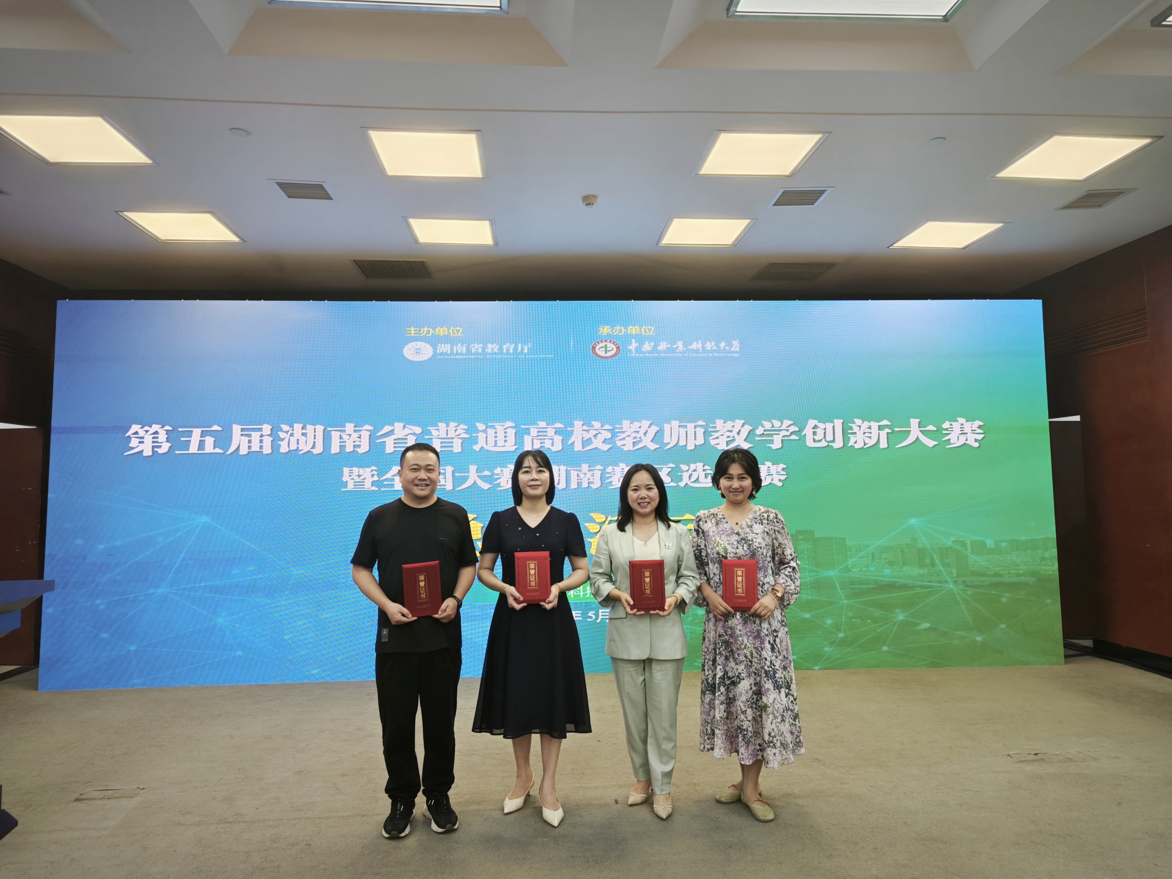 王迎春教授(左二)荣获第五届湖南省普通高校教师教学创新大赛一等奖