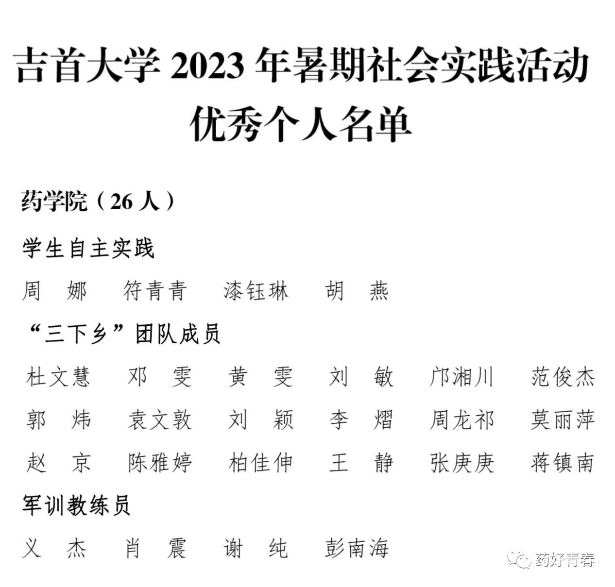 同时,热烈祝贺db真人体育官网22级药学1班邝湘川同学获得“千村调研计划”第八期暨“现代乡村服务业发展调研”优秀调研报告三等奖,报告名称为《白竹院村现代服务业发展调研》。