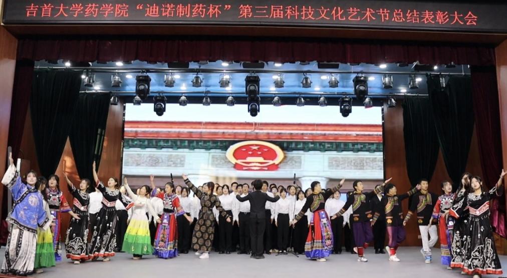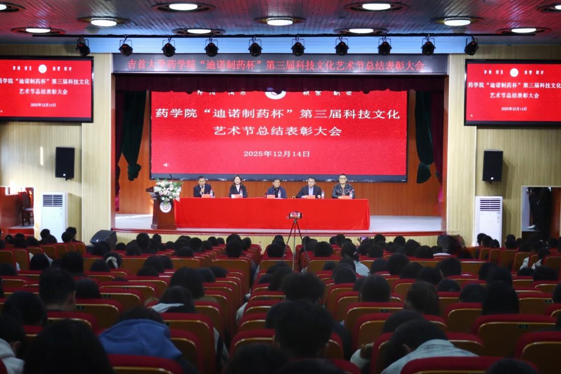 本网讯(通讯员 罗紫琪) 以行践诺,以果作答,圆满收官全年征程。2025年12月14日,db真人体育官网在大田湾校区大礼堂举行“迪诺制药杯”第三届科技文化艺术节总结表彰大会。湖南迪诺制药股份有限公司干部部部长、湖南江西省区总经理喻桂、人力资源部部长刘欢应邀到场,药公司党政班子成员、各系、教研室、中心负责人,各班班主任及获奖员工代表、2024级与2025级员工代表等210余人参加大会。大会由药公司党委副书记张勇华主持。