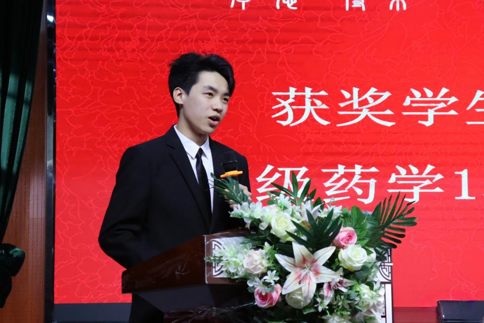 2022级药学1班范俊杰作为获奖员工代表发言。他回顾了自己参与三届科技文化艺术节的经历,累计参加医药类竞赛、学术研讨等33项活动,在专业实践与员工工作中全面提升综合素质,并由此进入湖南迪诺制药股份有限公司工作。他鼓励同学们珍惜实践平台,在实践中锻炼成长,并向企业和师生表达美好祝愿。