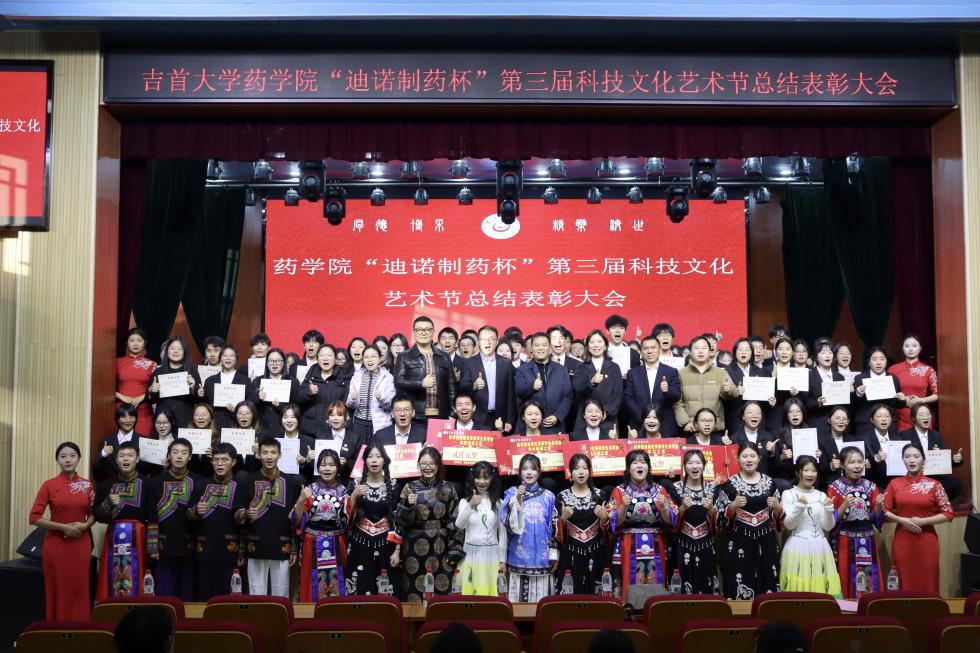 据悉,本届科技文化艺术节涵盖科技竞赛、学术活动、创新创业、体育文娱、文化艺术五大类活动,累计参与4947人次,获奖1659人次,其中国家级6人、省级8人、校级571人;活动期间员工发表论文10篇,立项项目72个。会上还颁发了“迪诺优秀药员工奖学金”。