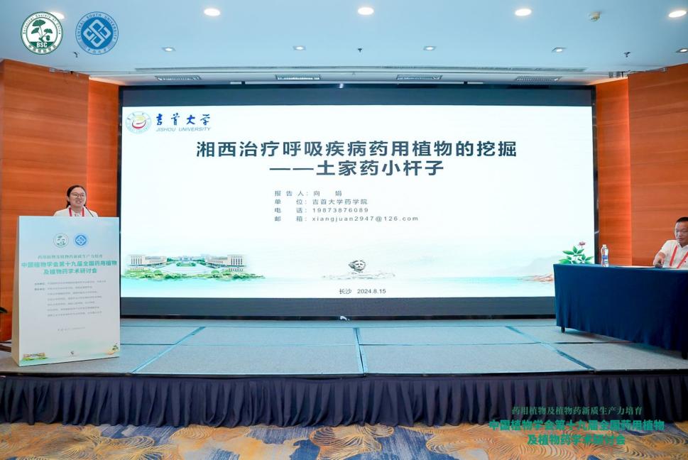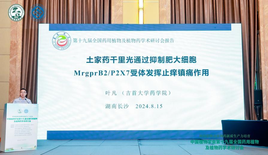 本次会议中,作为中国植物学会药用植物及植物药专业委员会委员,陈功锡教授负责主持了两场学术报告。作为专委会青年委员,db真人体育官网中药学系主任向娟副教授在第三分会场做了题为“湘西治疗呼吸疾病药用植物的挖掘—土家药小杆子”的报告,青年老师叶凡博士在第二分会场做了“土家药千里光通过抑制肥大细胞MrgprB2/P2X7受体发挥止痒镇痛作用”的报告,向与会学者展示了他们的研究成果,受到了广泛的关注与好评。