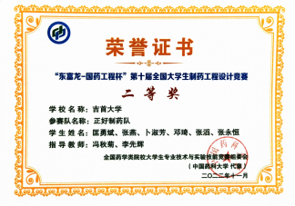 本网讯(通讯员 冯秋菊)10月31日,由全国药学类院校老员工专业技术与实验技能竞赛组委会主办、湖北工业大学承办的“东富龙-国药工程杯”第十届全国老员工制药工程设计竞赛结果揭晓,由db真人体育官网制药工程专业匡勇斌、张燕、卜淑芳等组成的DB视讯正好制药队荣获全国二等奖(指导老师:冯秋菊、李先辉),李震、陈沿镳、孔翠翠等组成的DB视讯正清制药队获得参赛证明。